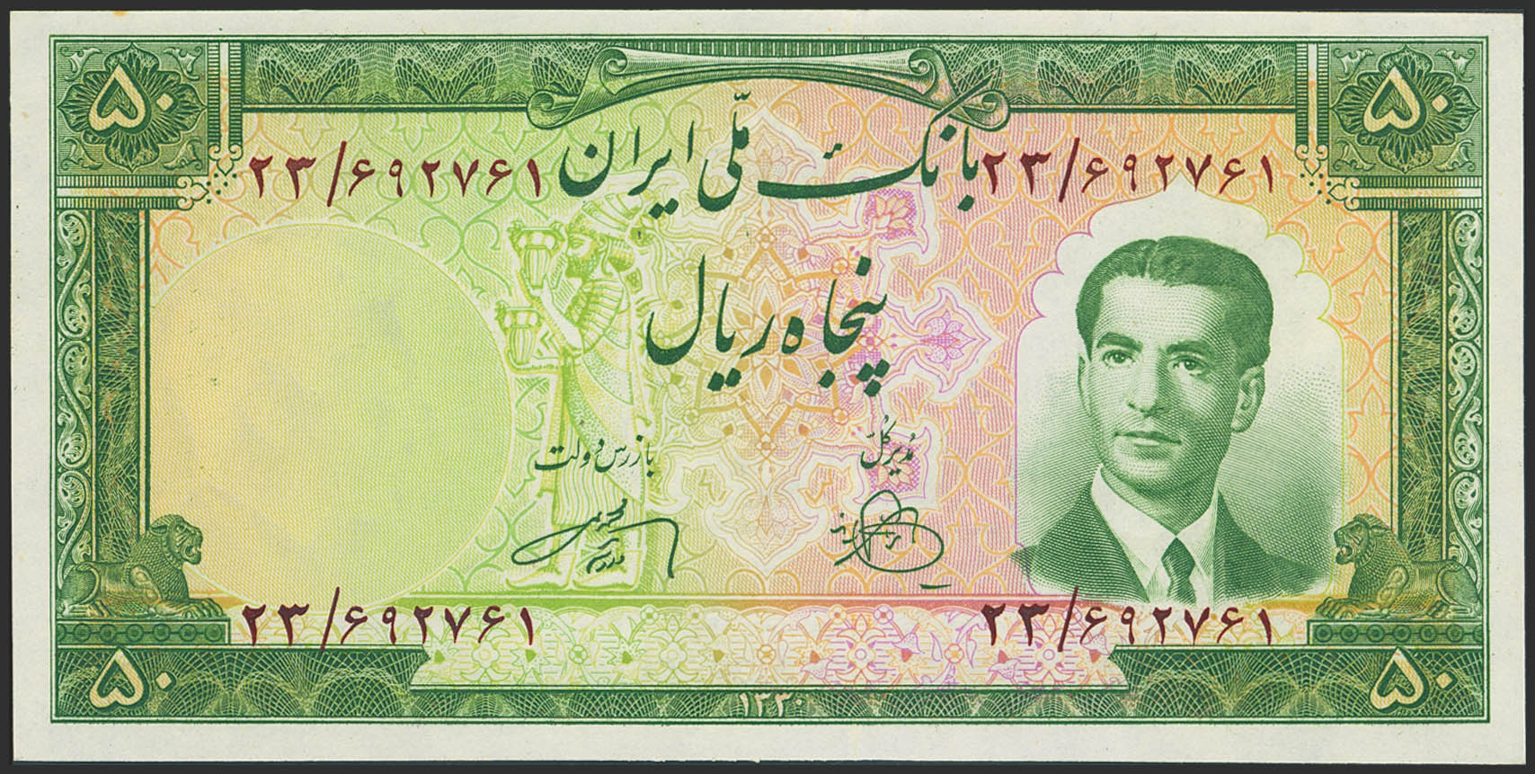 IRAN. 50 Rials. 1951. (Pick: 56). Less than Uncirculated.