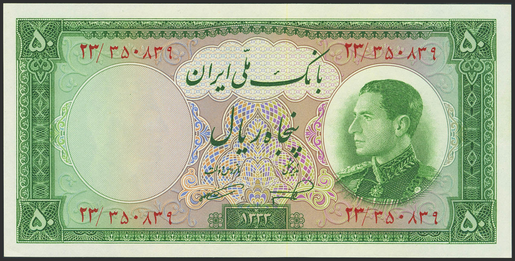 IRAN. 50 Rials. 1954. (Pick: 66). Less than Uncirculated.