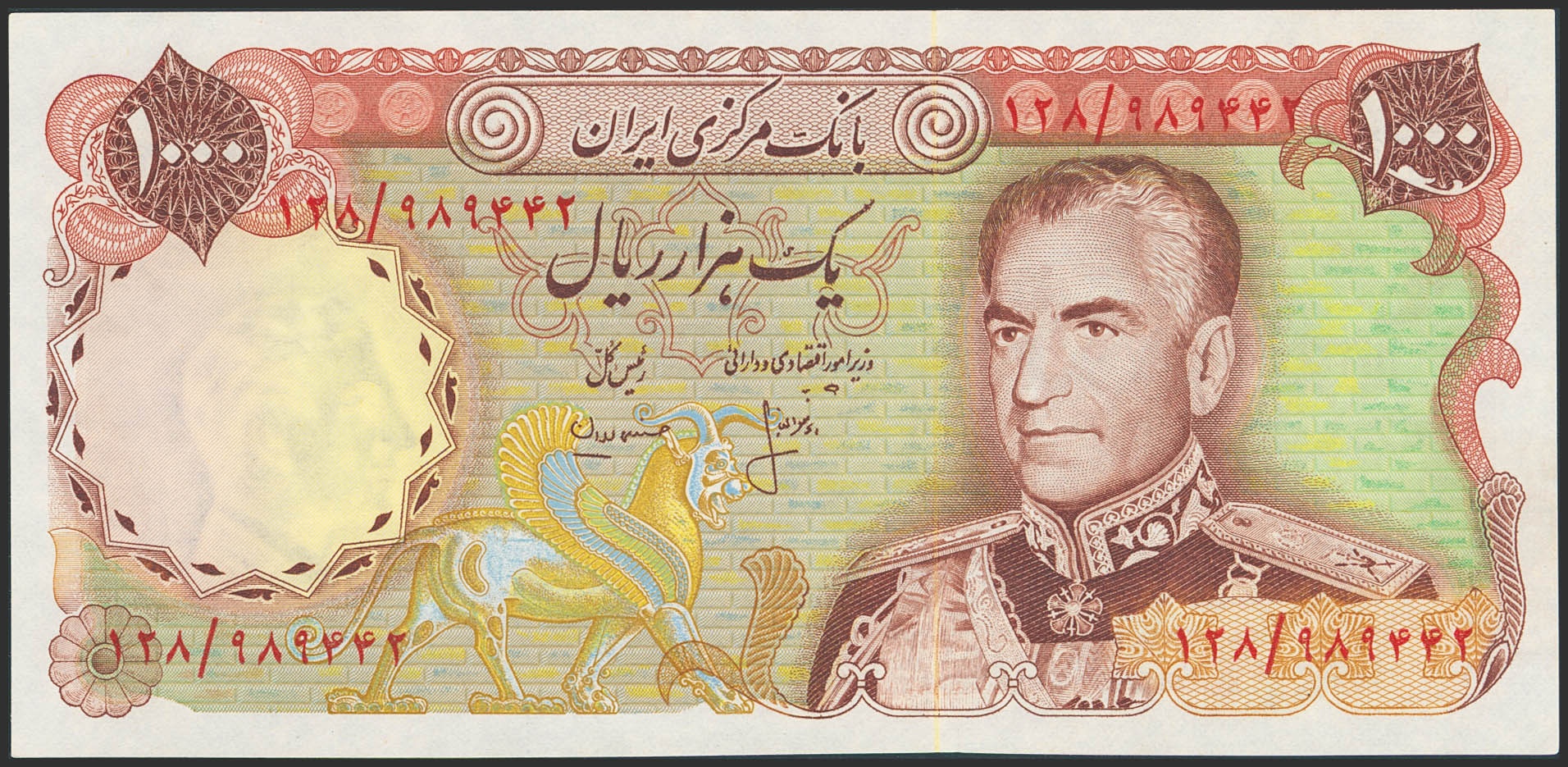 IRAN. 1000 Rials. (1974ca). (Pick: 105d). Less than Uncirculated.