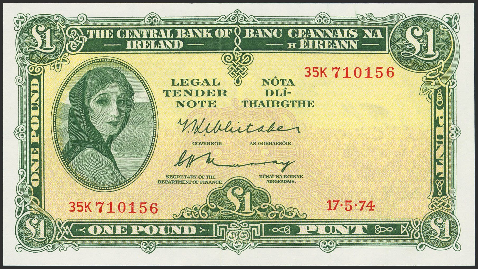 IRELAND. 1 Pound. May 17, 1974. (Pick: 64c). Uncirculated.