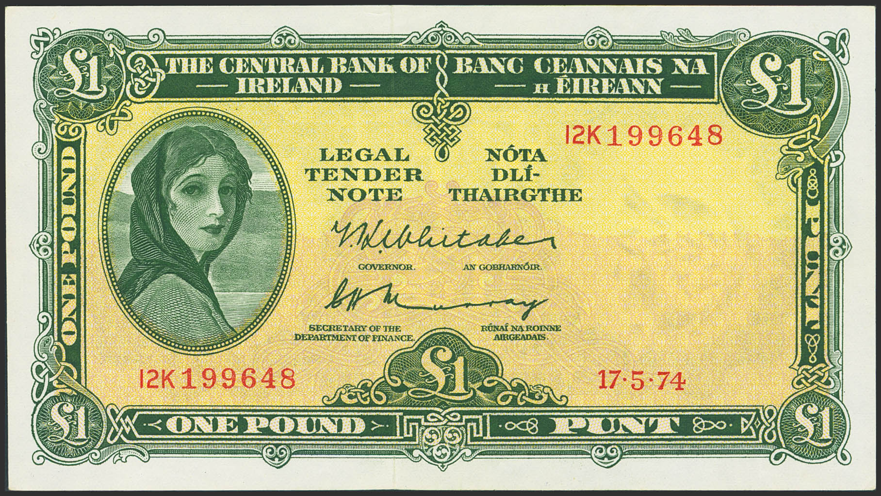IRELAND. 1 Pound. May 17, 1974. (Pick: 64c). Less than Uncirculated.