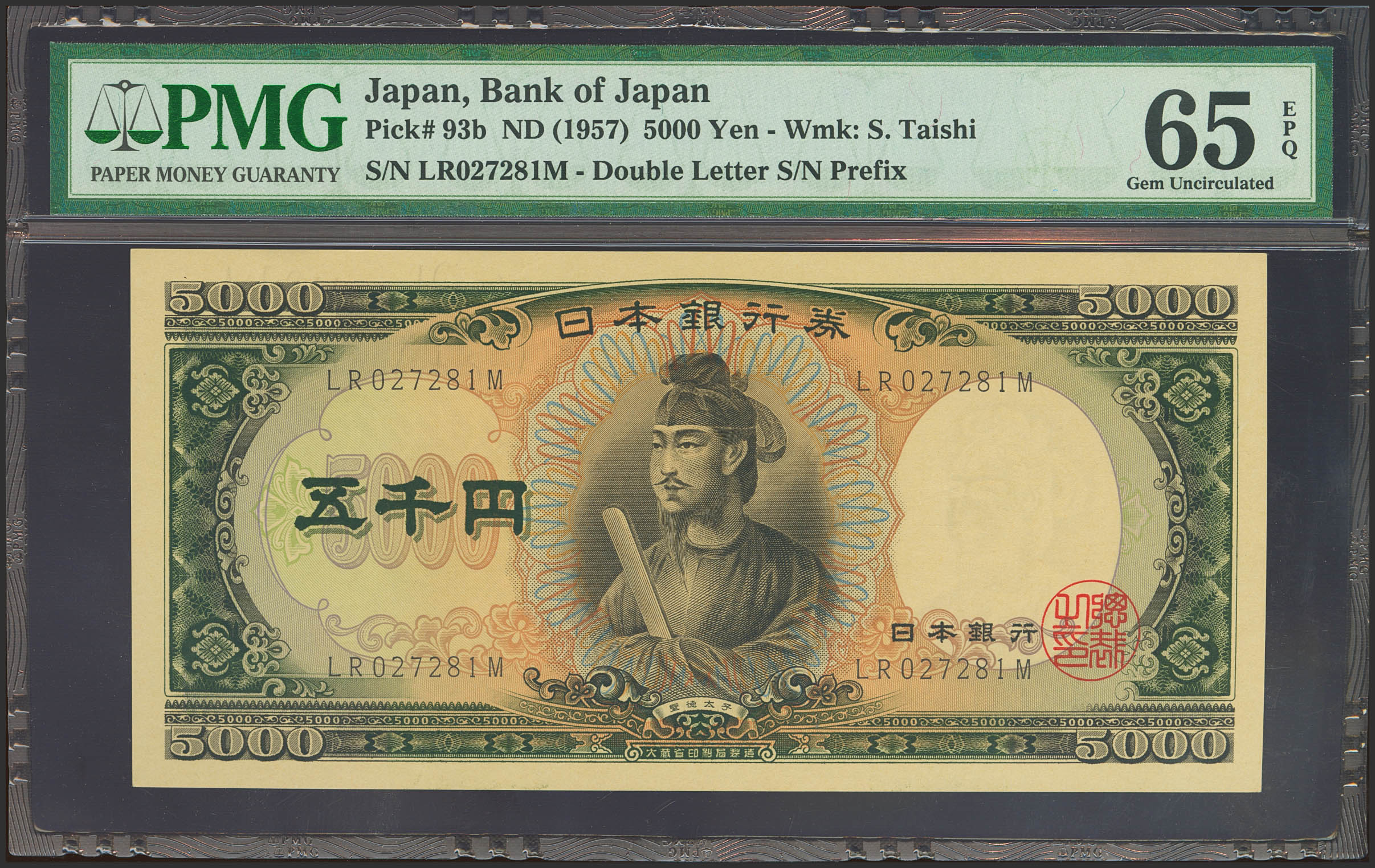 English JAPAN. 5000 Yen. (1957ca). (Pick: 93b). PMG65EPQ.