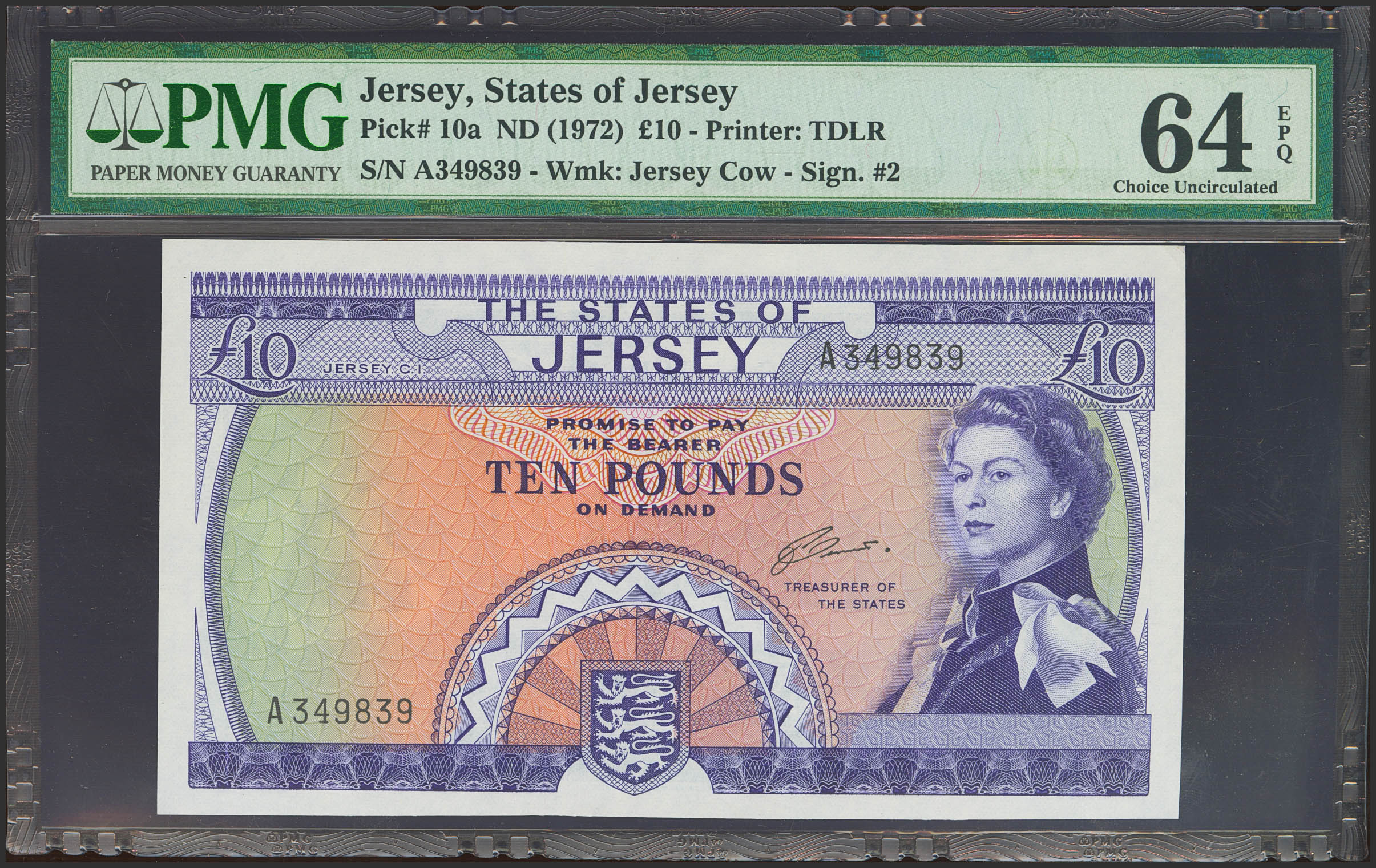 English JERSEY. 10 Pounds. (1972ca). (Pick: 10a). PMG64EPQ.