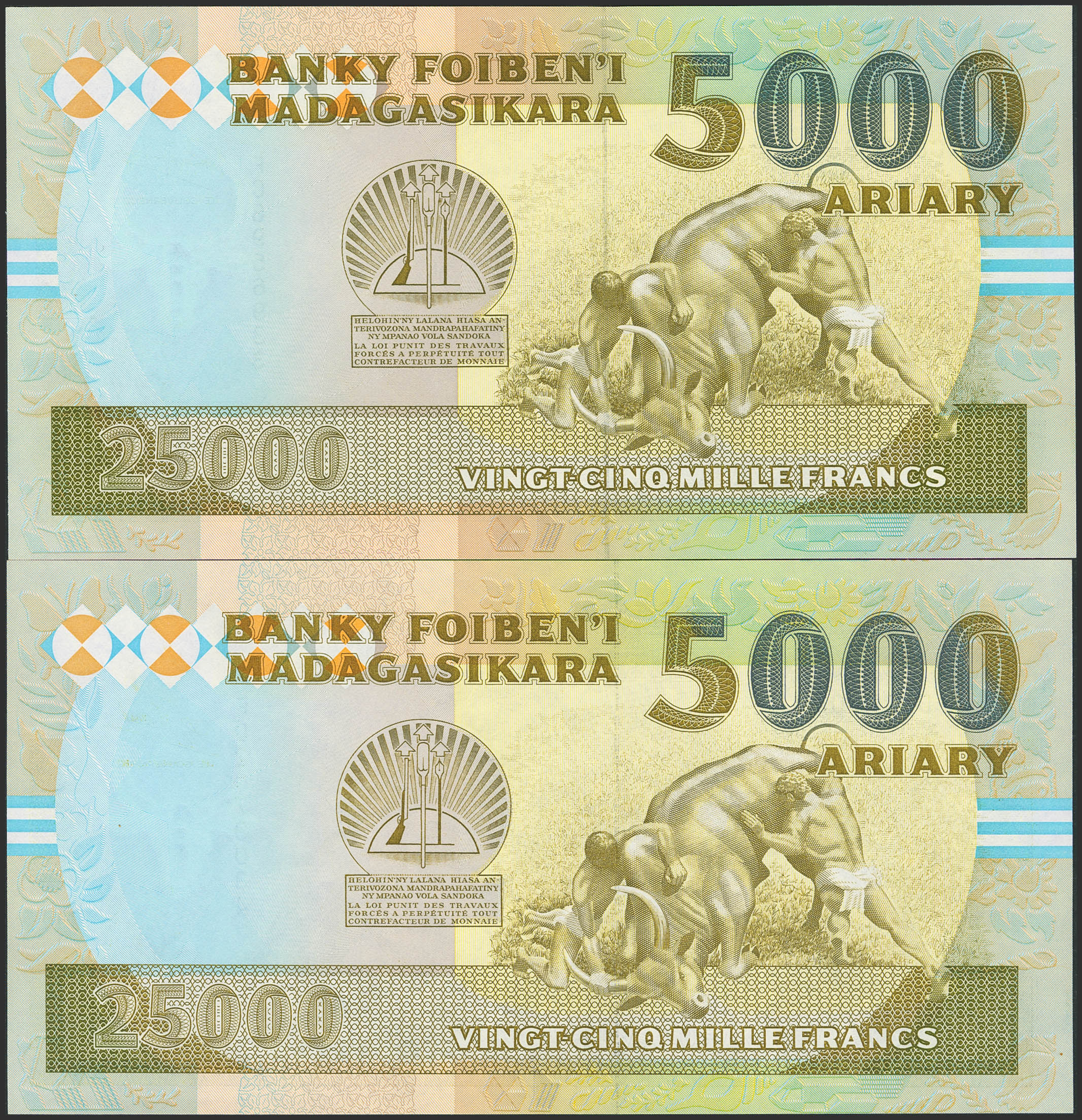 MADAGAUncirculatedAR. 2500 Francs. (1988ca). (Pick: 74A(2)). Uncirculated.