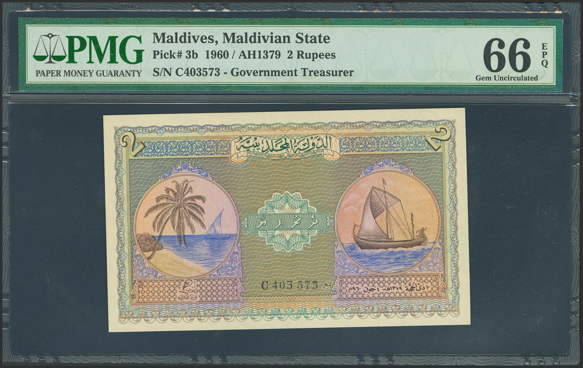 MALDIVES. 2 Rupees. 1960. (Pick: 3b). PMG66EPQ.