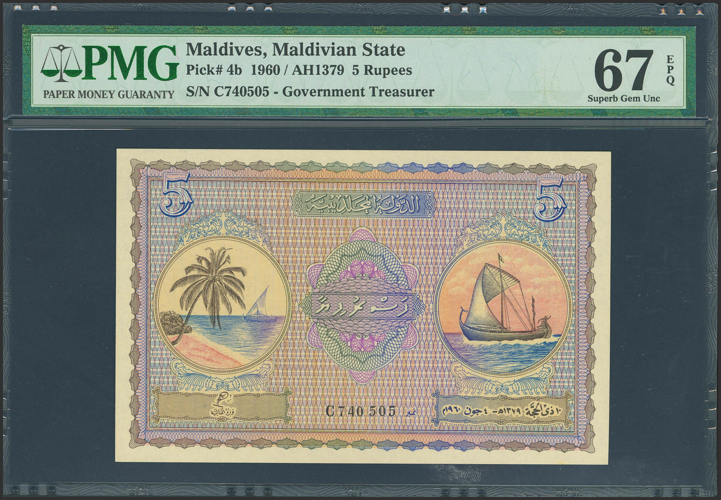 MALDIVES. 5 Rupees. 1960. (Pick: 4b). PMG67EPQ.