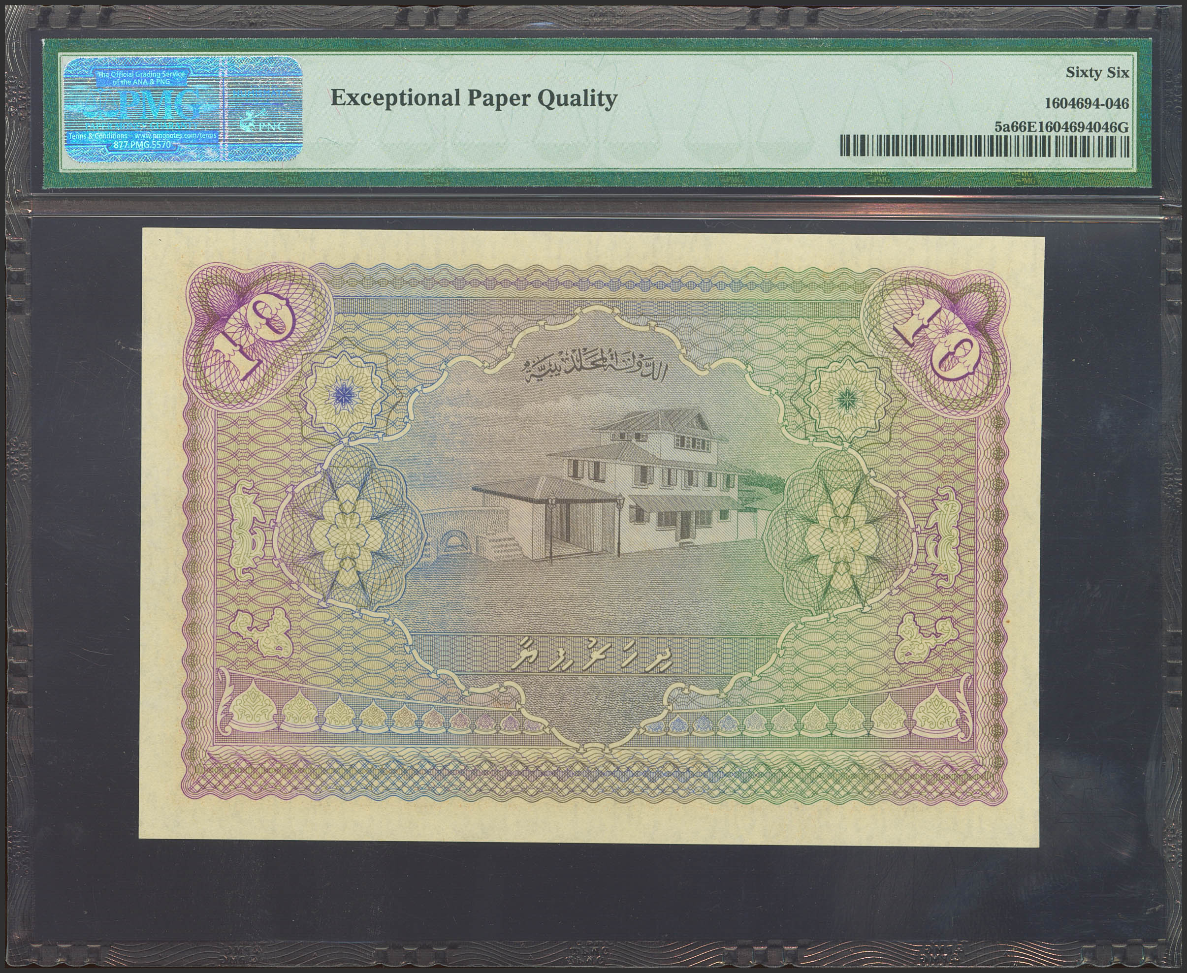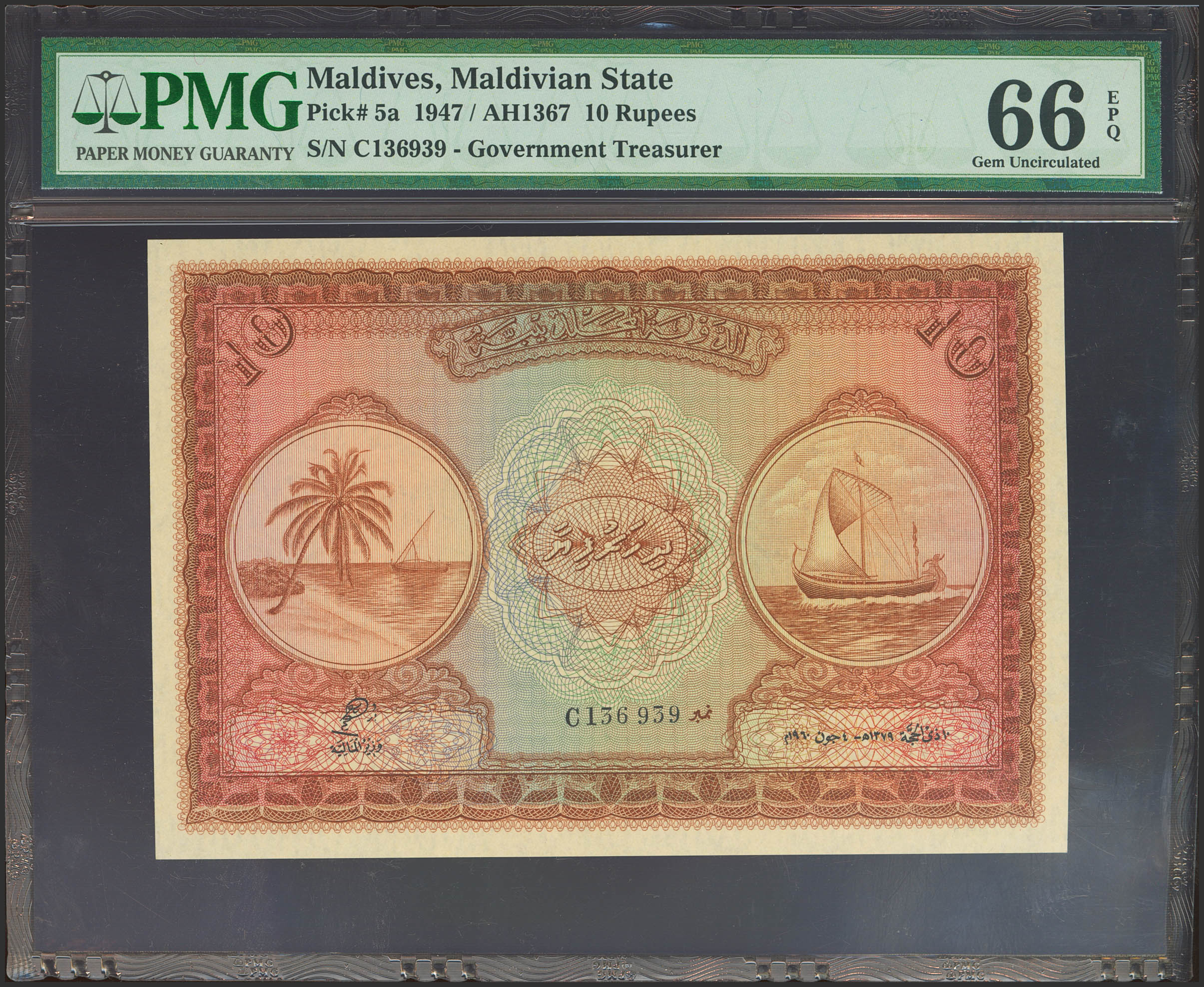 MALDIVES. 10 Rupees. 1947. (Pick: 5a). PMG66EPQ.
