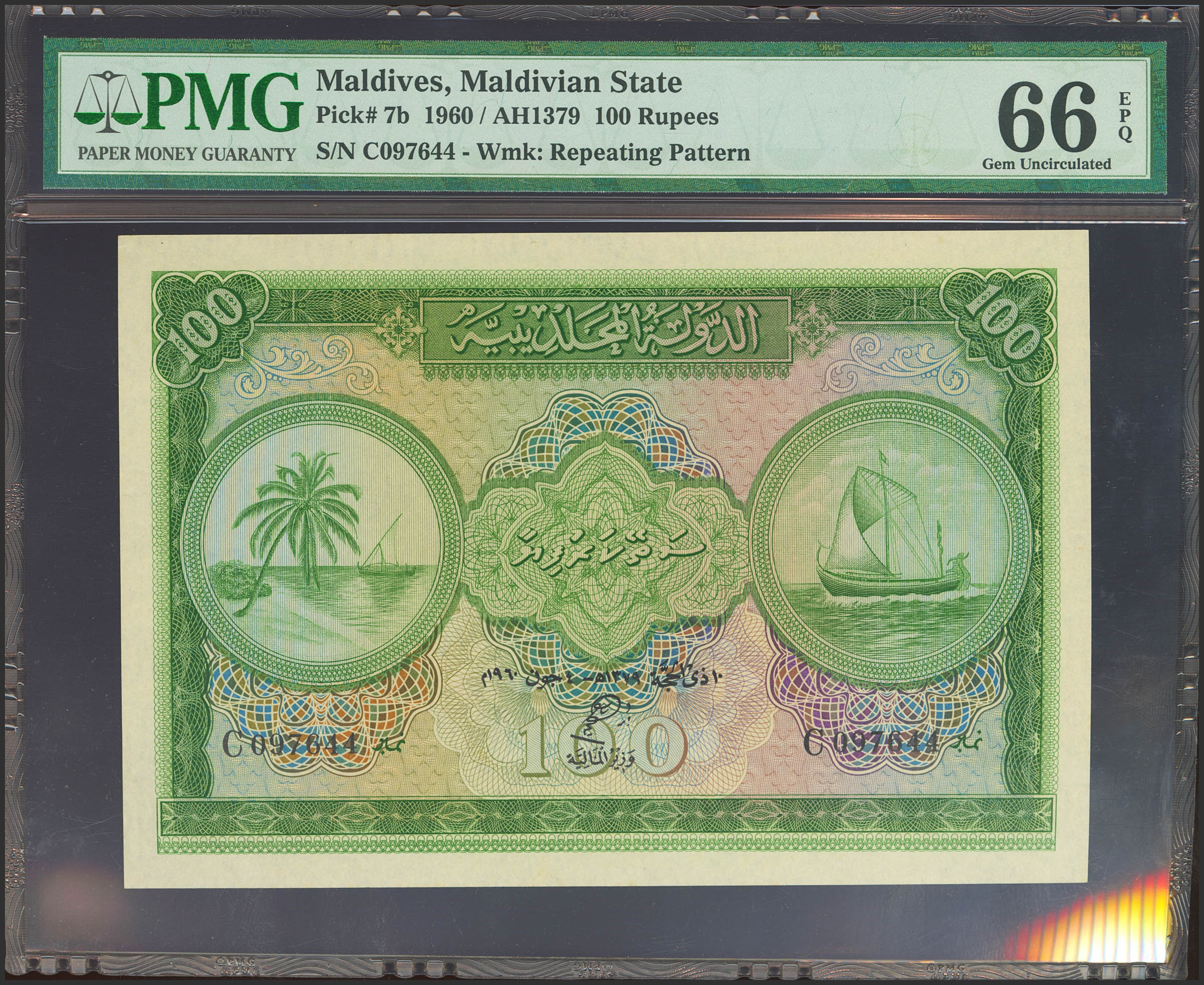 MALDIVES. 100 Rupees. 1960. (Pick: 7b). Very rare. PMG66EPQ.
