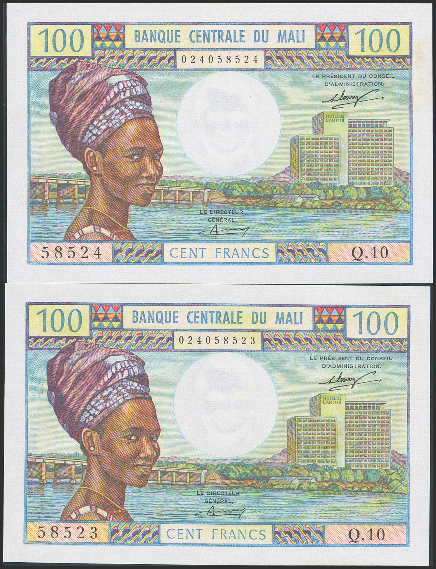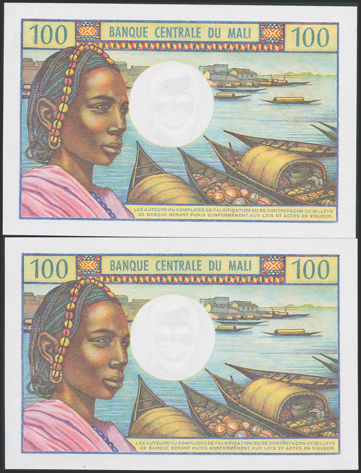 MALI. 100 Francs. Pair correlative. (1972ca). (Pick: 11). About Uncirculated.