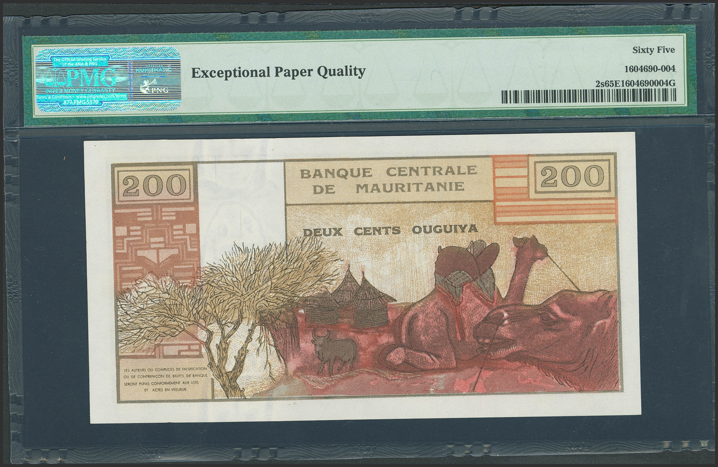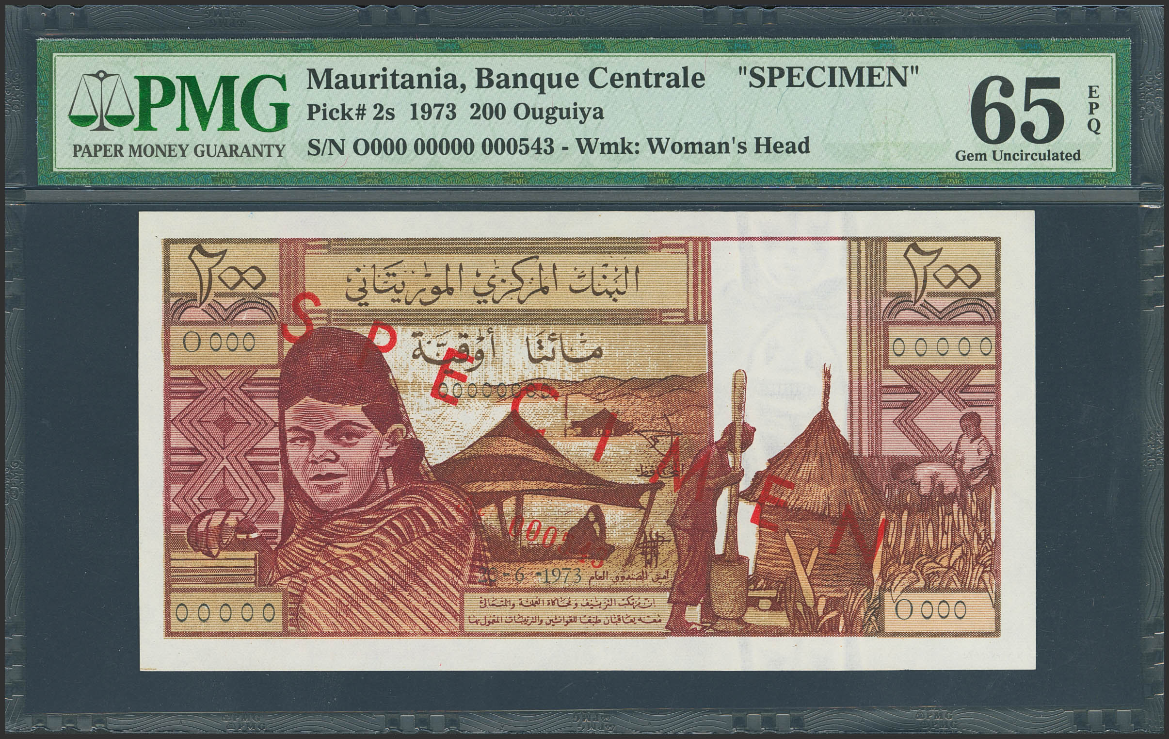 MAURITANIA. 200 Ouguiya. 1973. SPECIMEN. (Pick: 2s). PMG65EPQ.