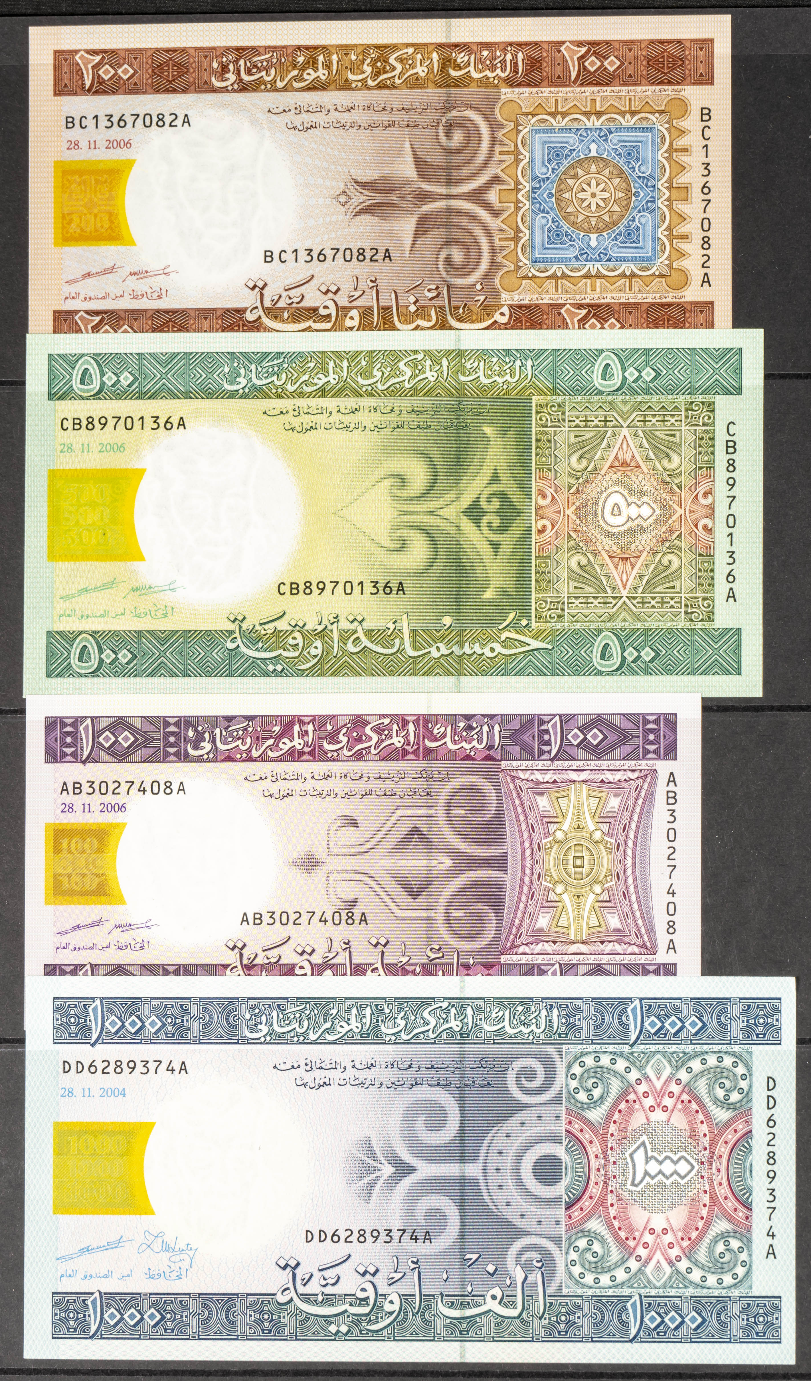 Set of 4 banknotes of Mauritania of same issues and most of them nice qualities. TO EXAMINE.