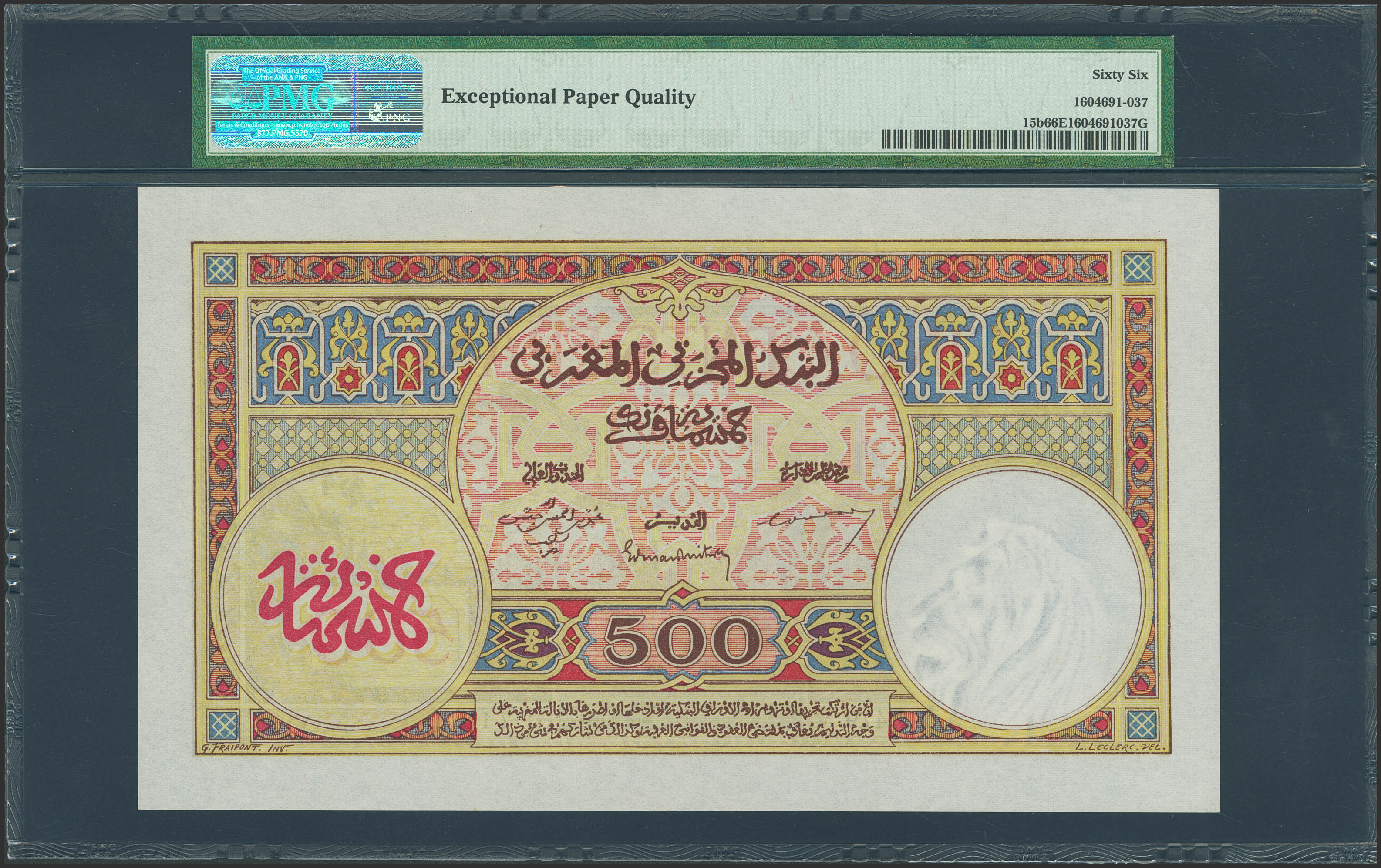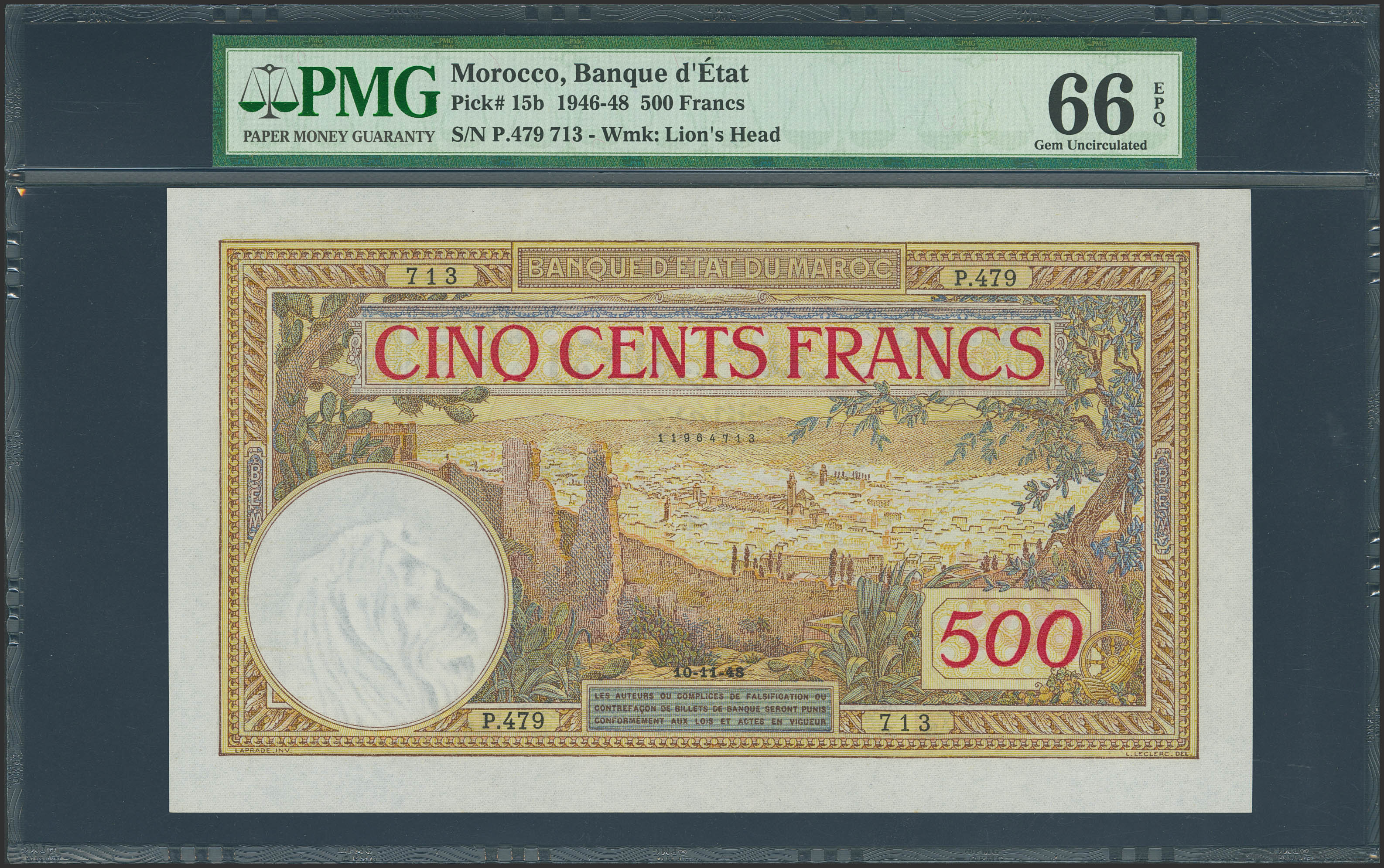 MOROCCO. 500 Francs. November 10, 1948. (Pick: 15b). Rare, especially in this quality. PMG65EPQ.