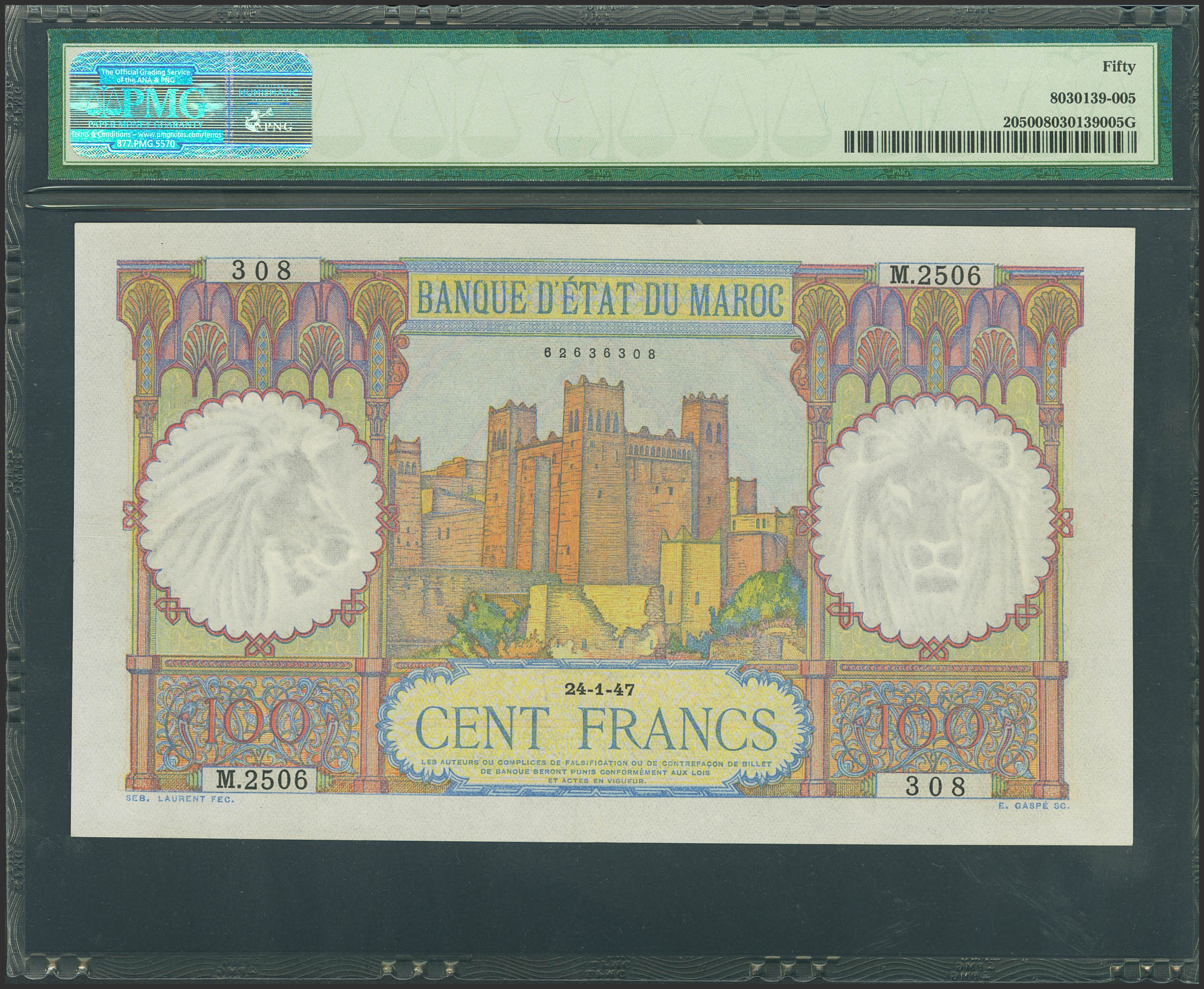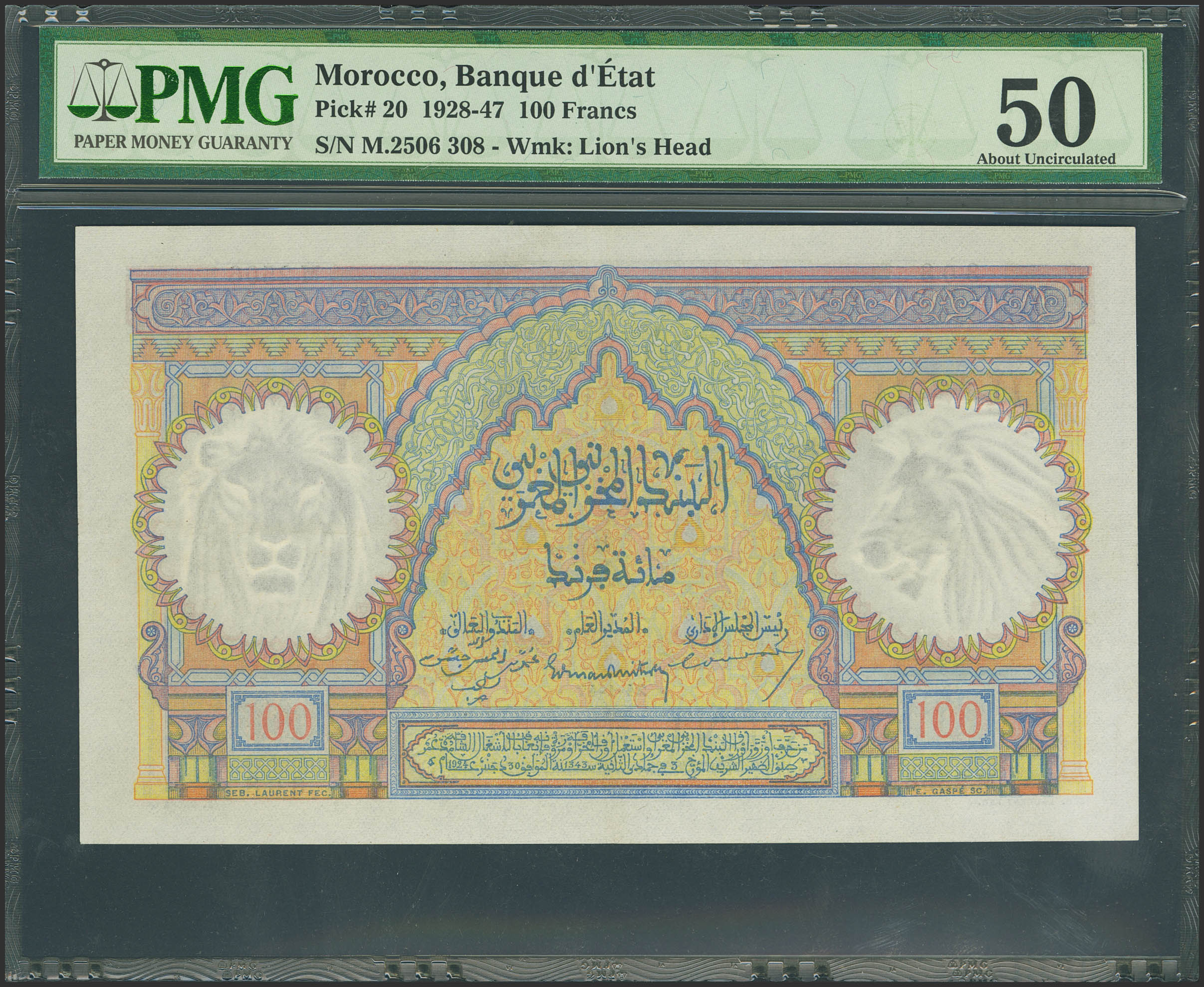 MOROCCO. 100 Francs. January 24, 1945. (Pick: 20). PMG50.