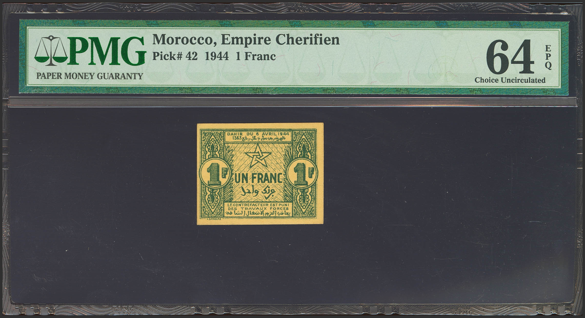 English MOROCCO. 1 Franc. 1944. (Pick: 42). PMG64EPQ.