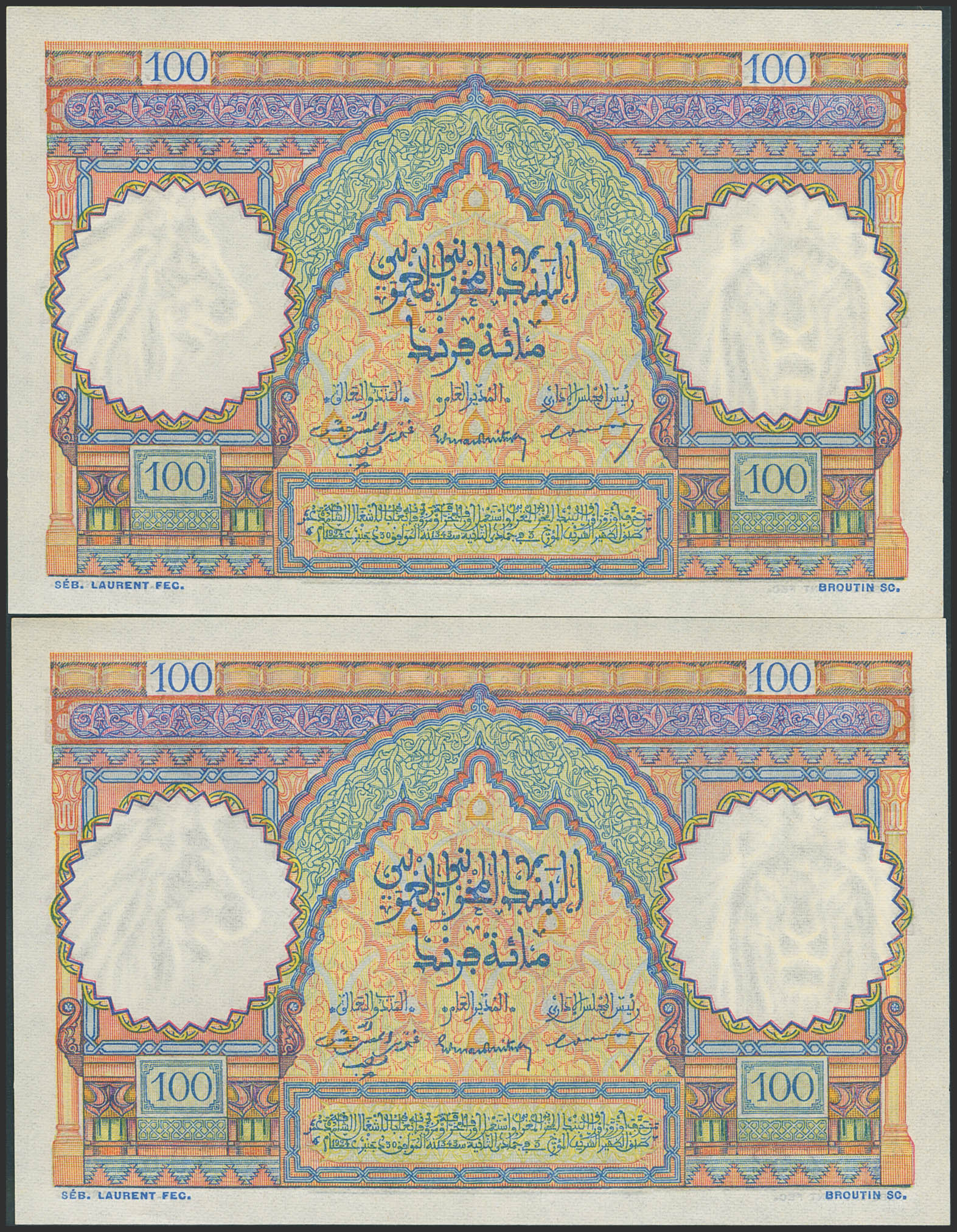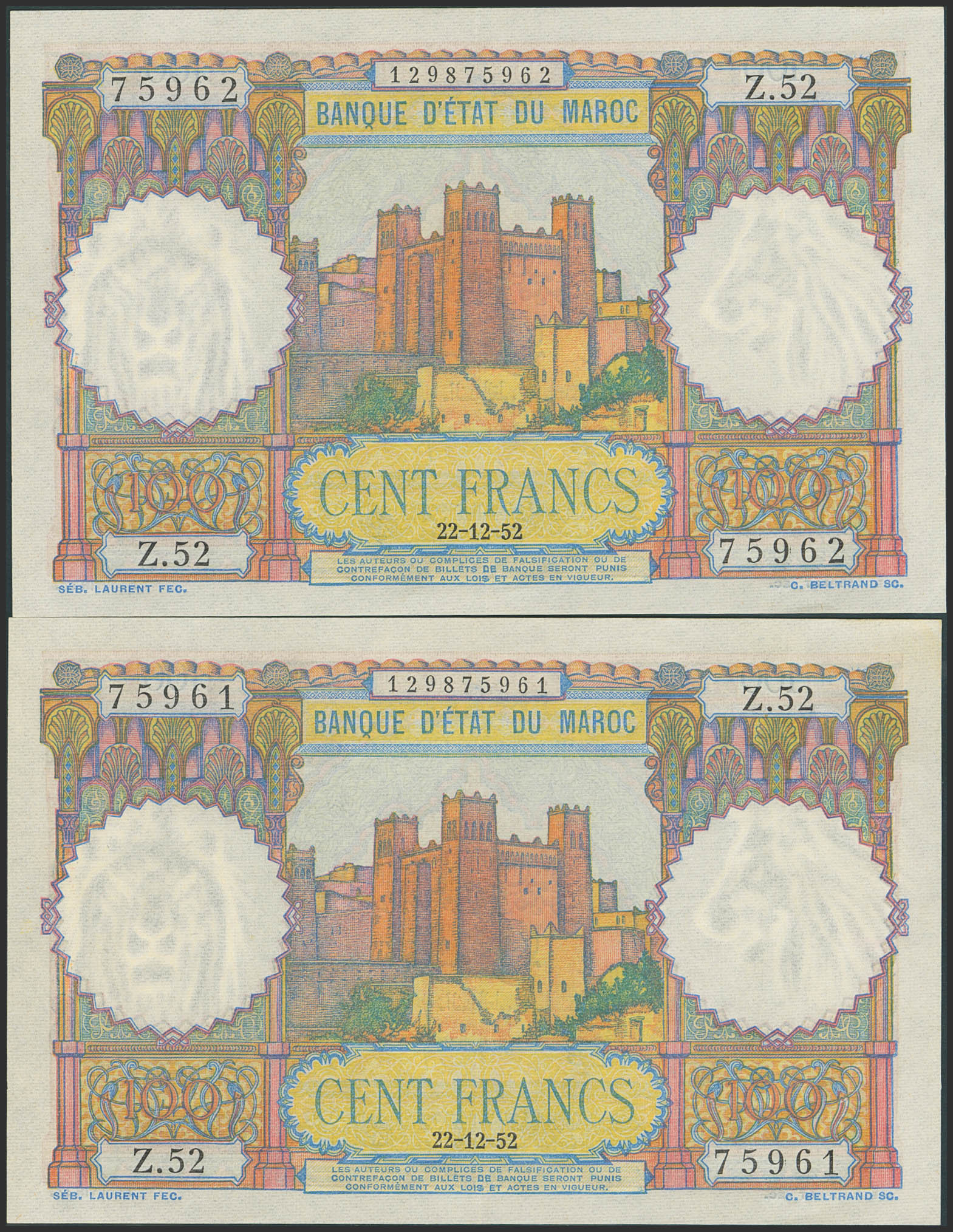 MOROCCO. 100 Francs. Pair correlative. December 22, 1952. (Pick: 45). More than Extremely Fine.