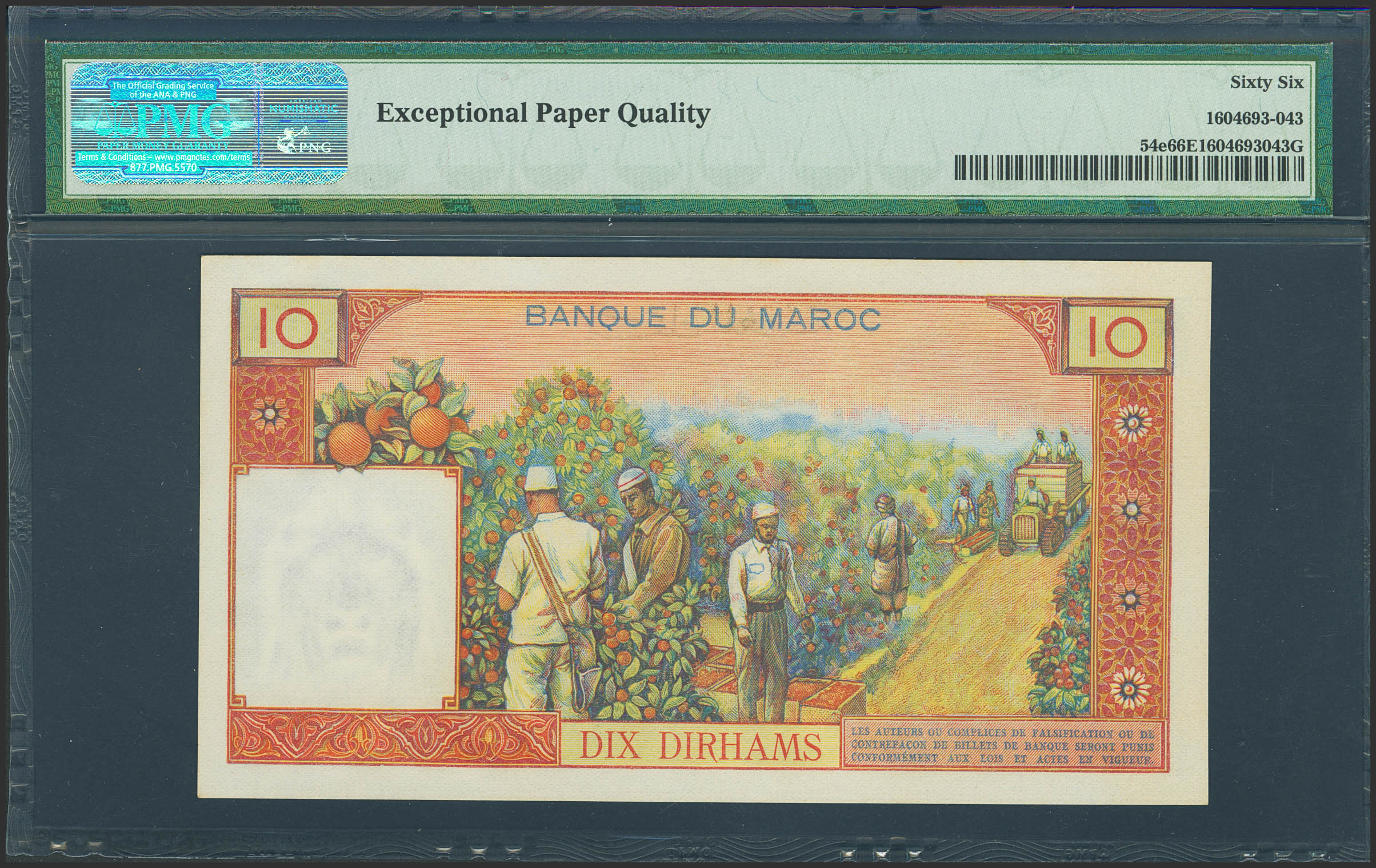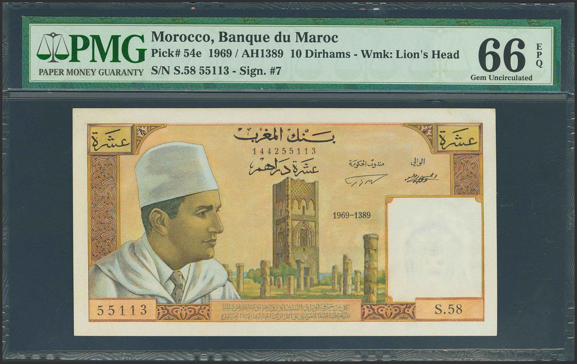 MOROCCO. 10 Dirhams. 1969. (Pick: 54e). Rare. PMG66EPQ.