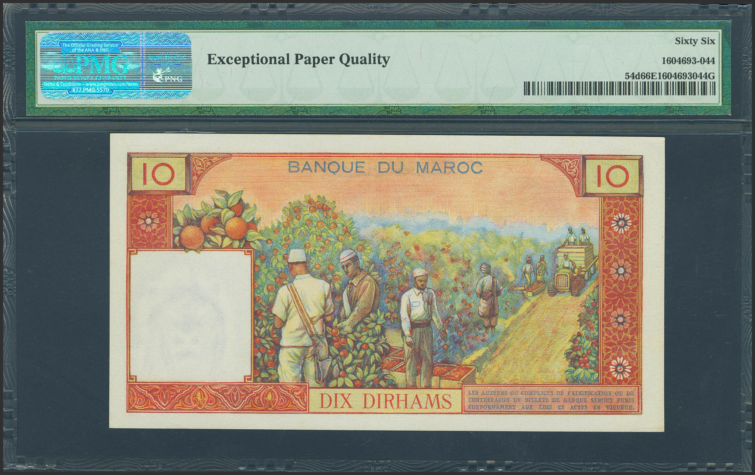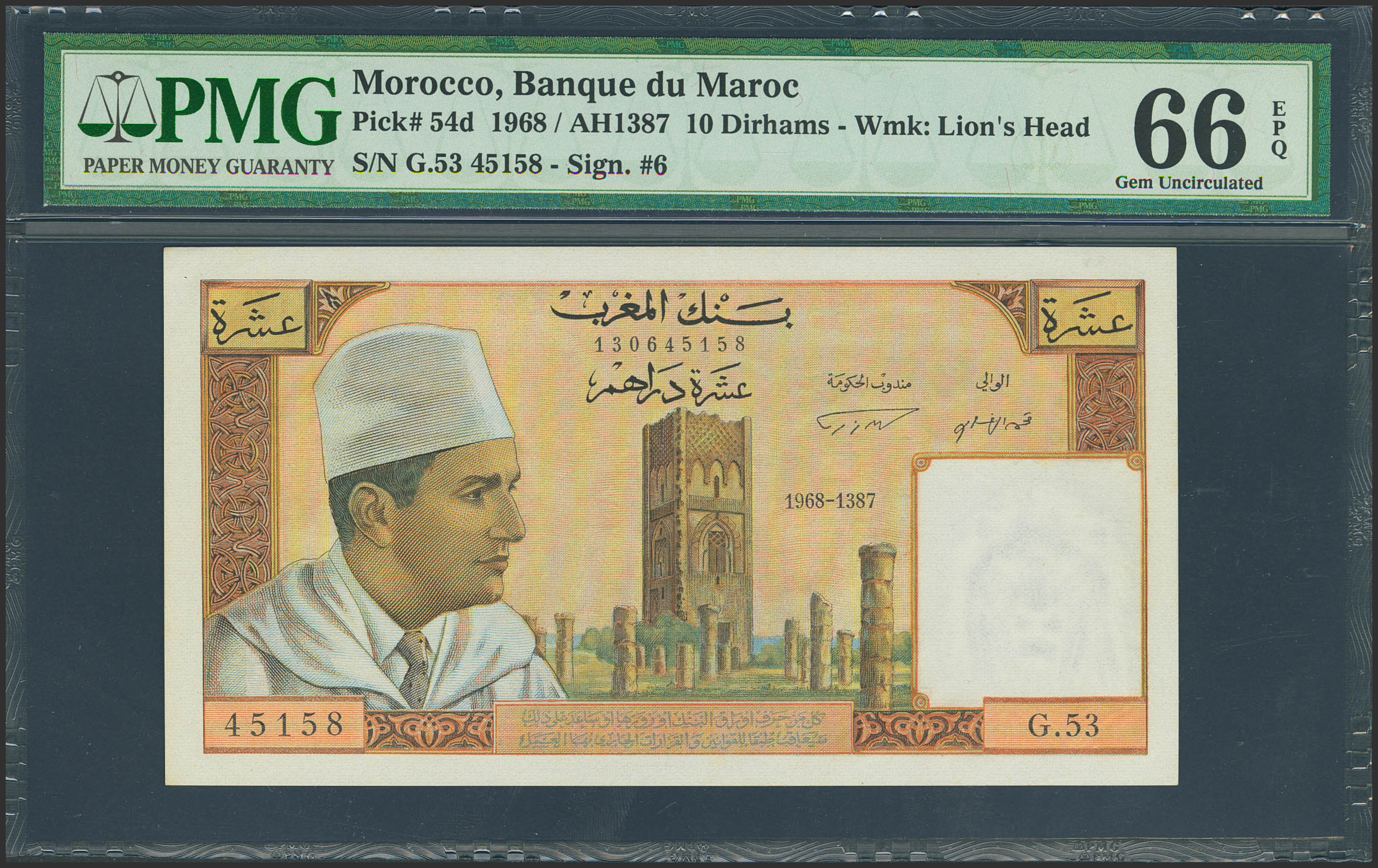 MOROCCO. 10 Dirhams. 1968. (Pick: 54d). Rare. PMG66EPQ.