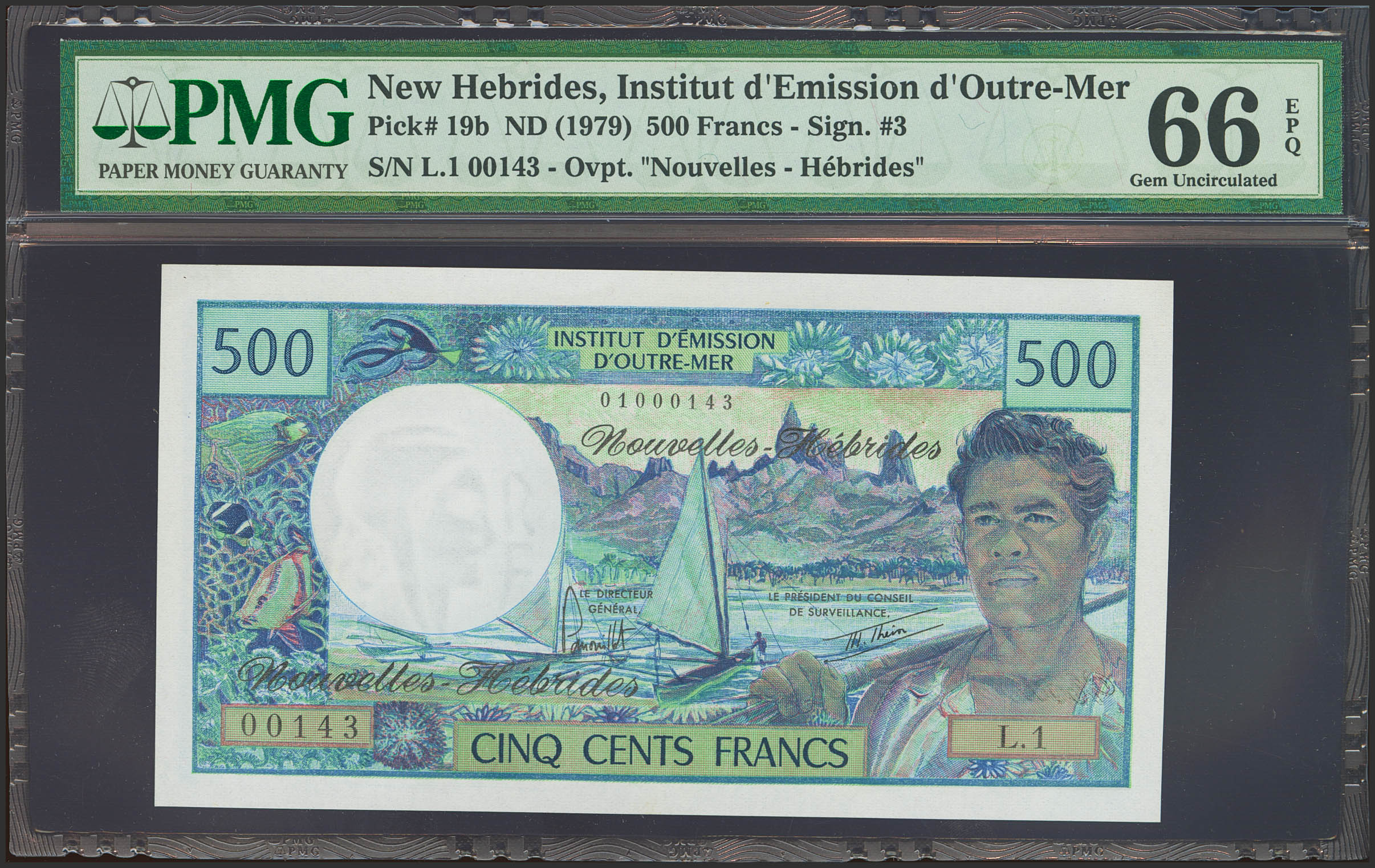 NEW HENRIDES. 500 Francs. (1979ca). (Pick: 19b). PMG66EPQ.