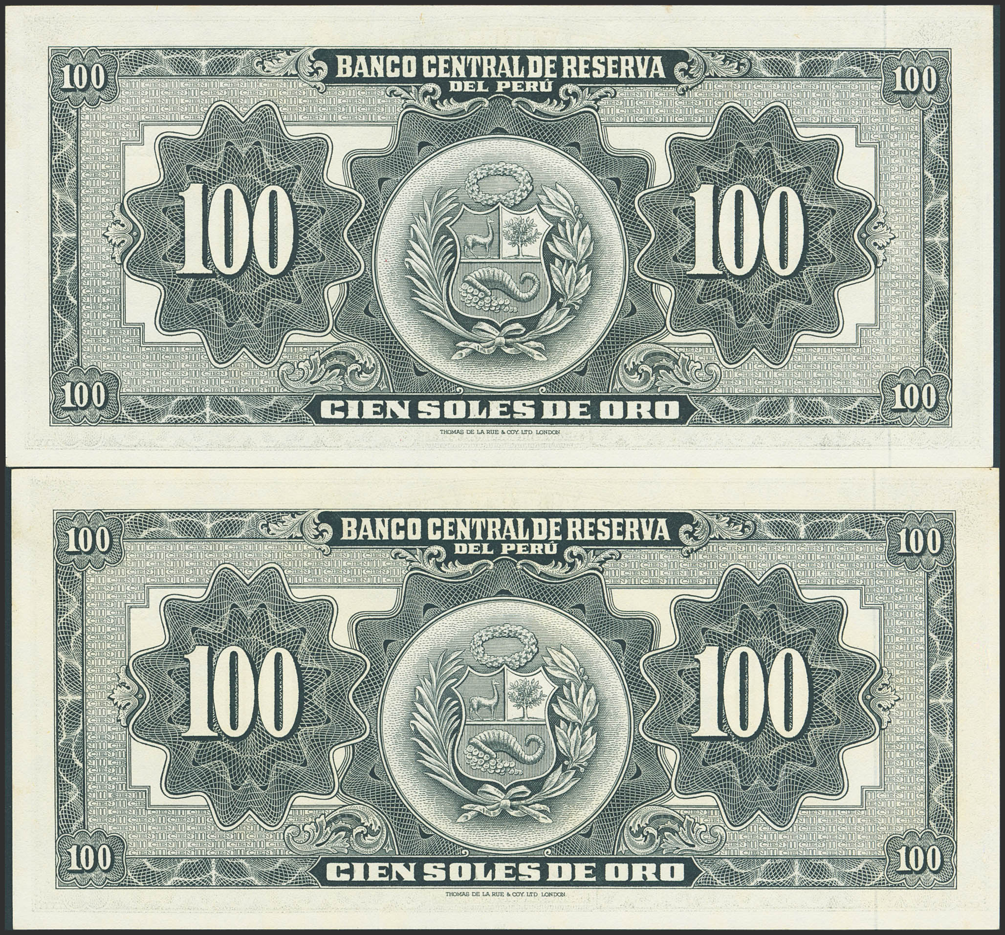 PERU. 100 Soles. Pair correlative. May 13, 1964. (Pick: 86). Less than Uncirculated.