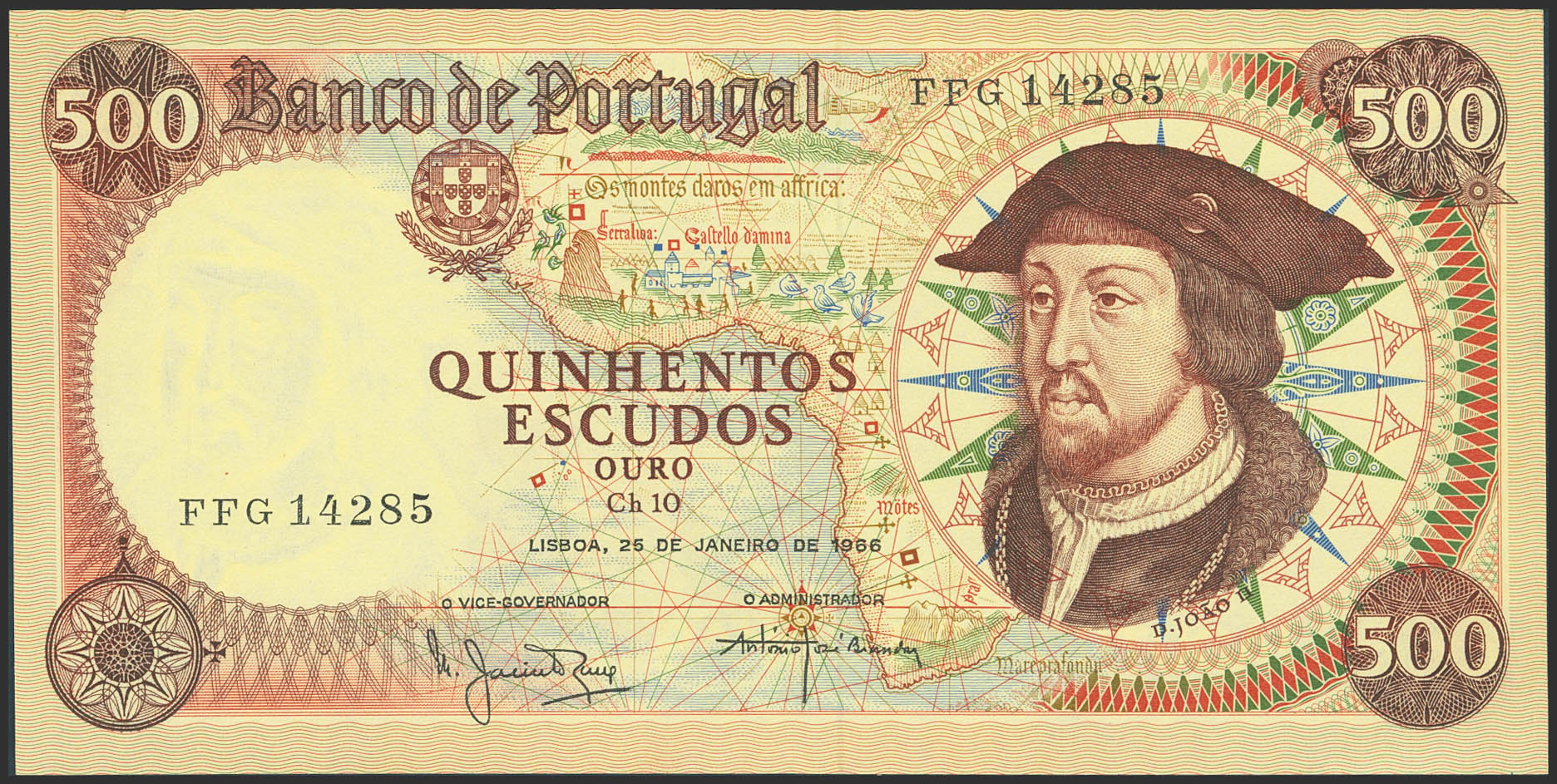 PORTUGAL. 500 Shields. January 25, 1966. (Pick: 170a). About Uncirculated.
