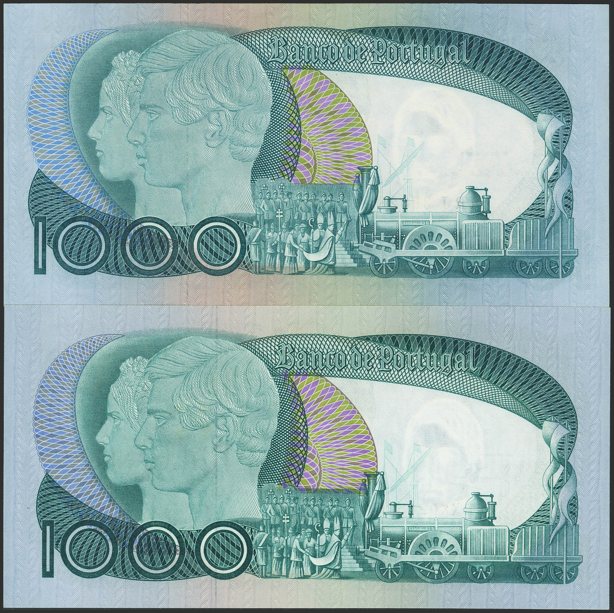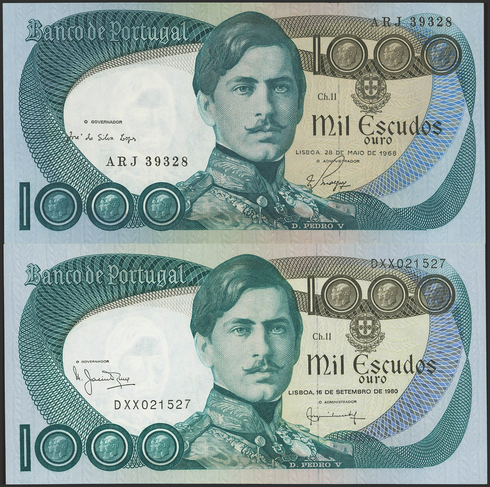 Set of 2 banknotes of Portugal of 1000 Escudos. 28 May 1968 and 16 September 1980. (Pick: 175(2)). Uncirculated / About Uncirculated.