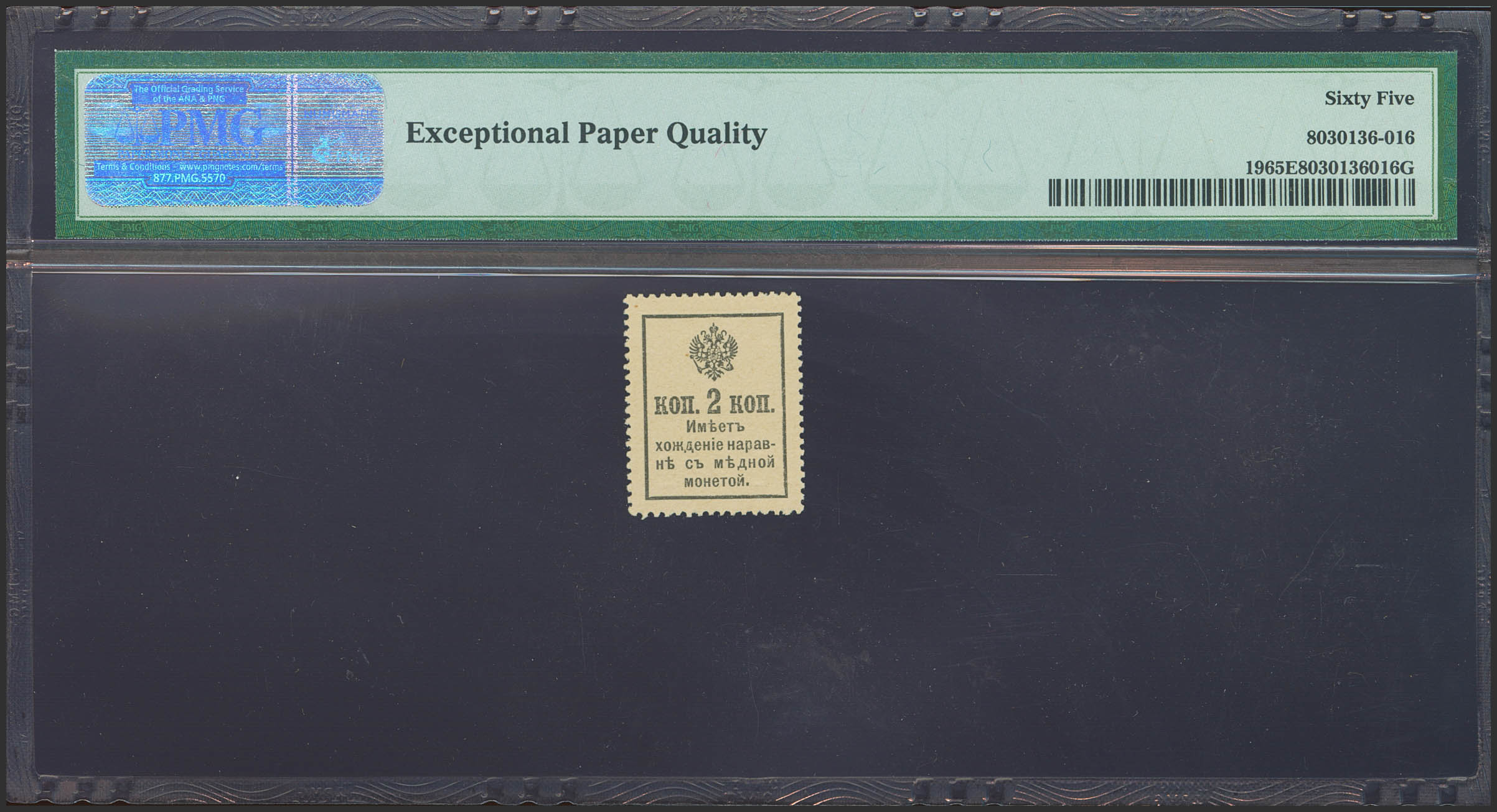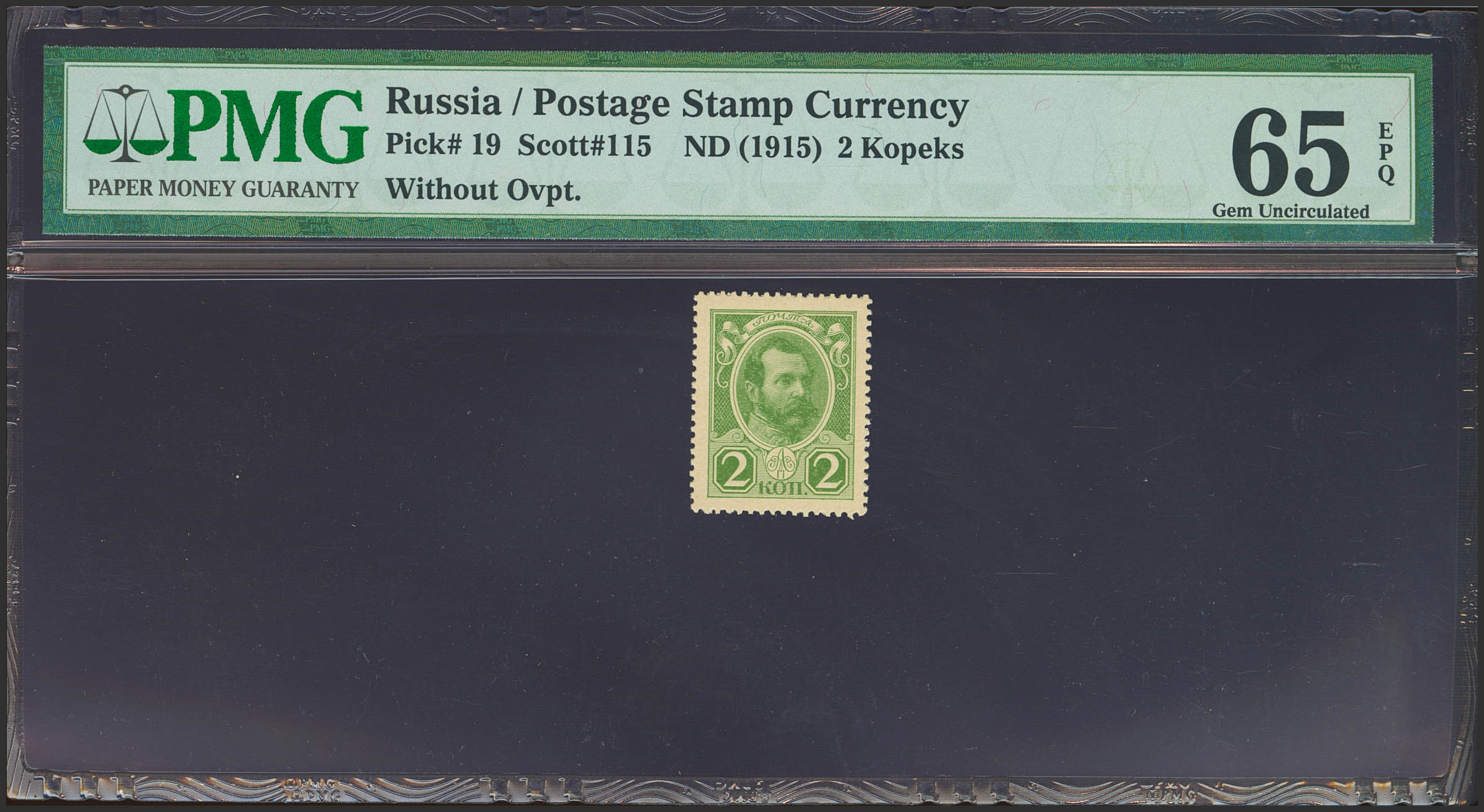 RUSSIA. 2 Kopeks. (1915ca). Postage Stamp Currency. (Pick: 19). PMG65EPQ.