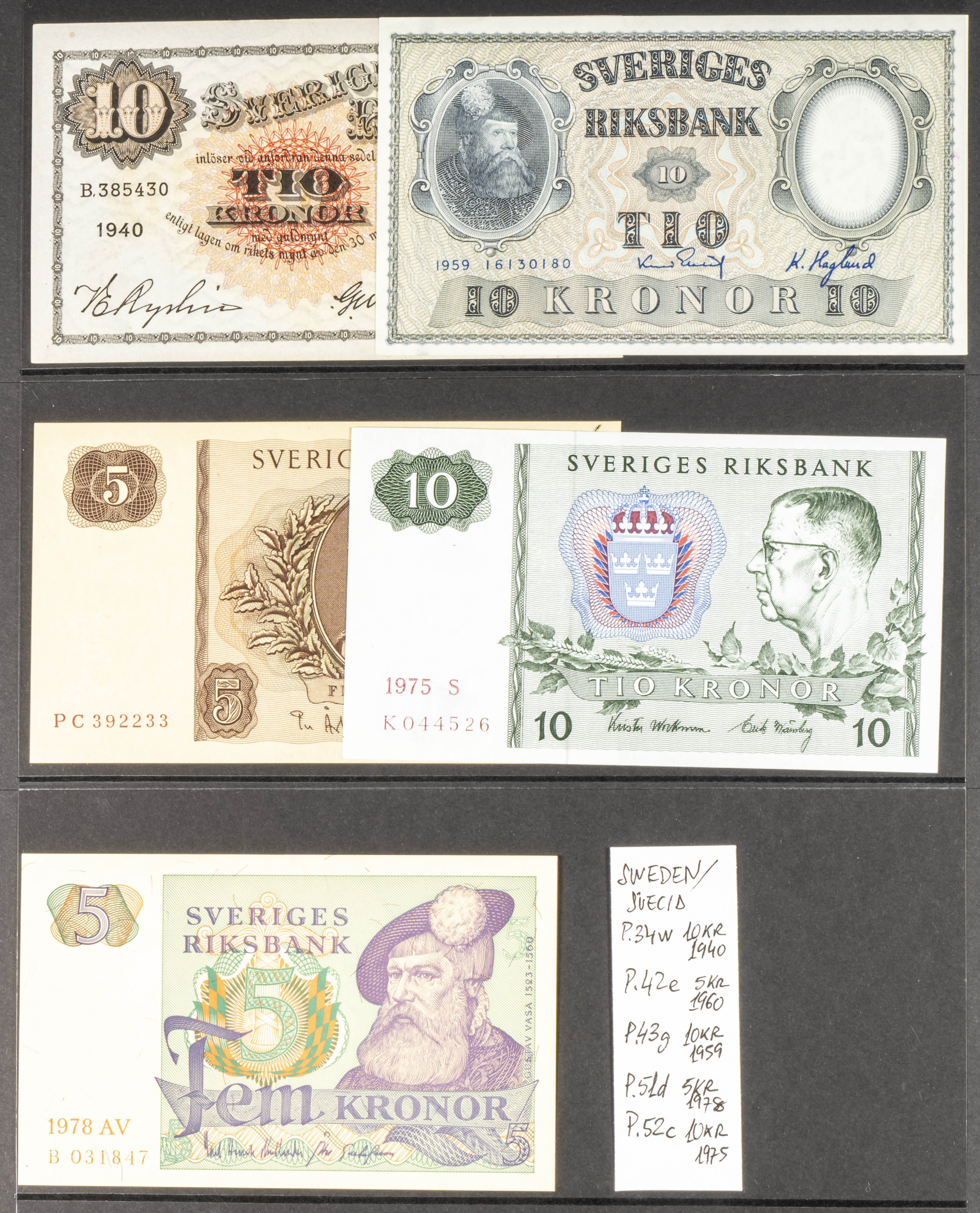 Set of 5 banknotes of Sweden of various issues and different qualities. TO EXAMINE.