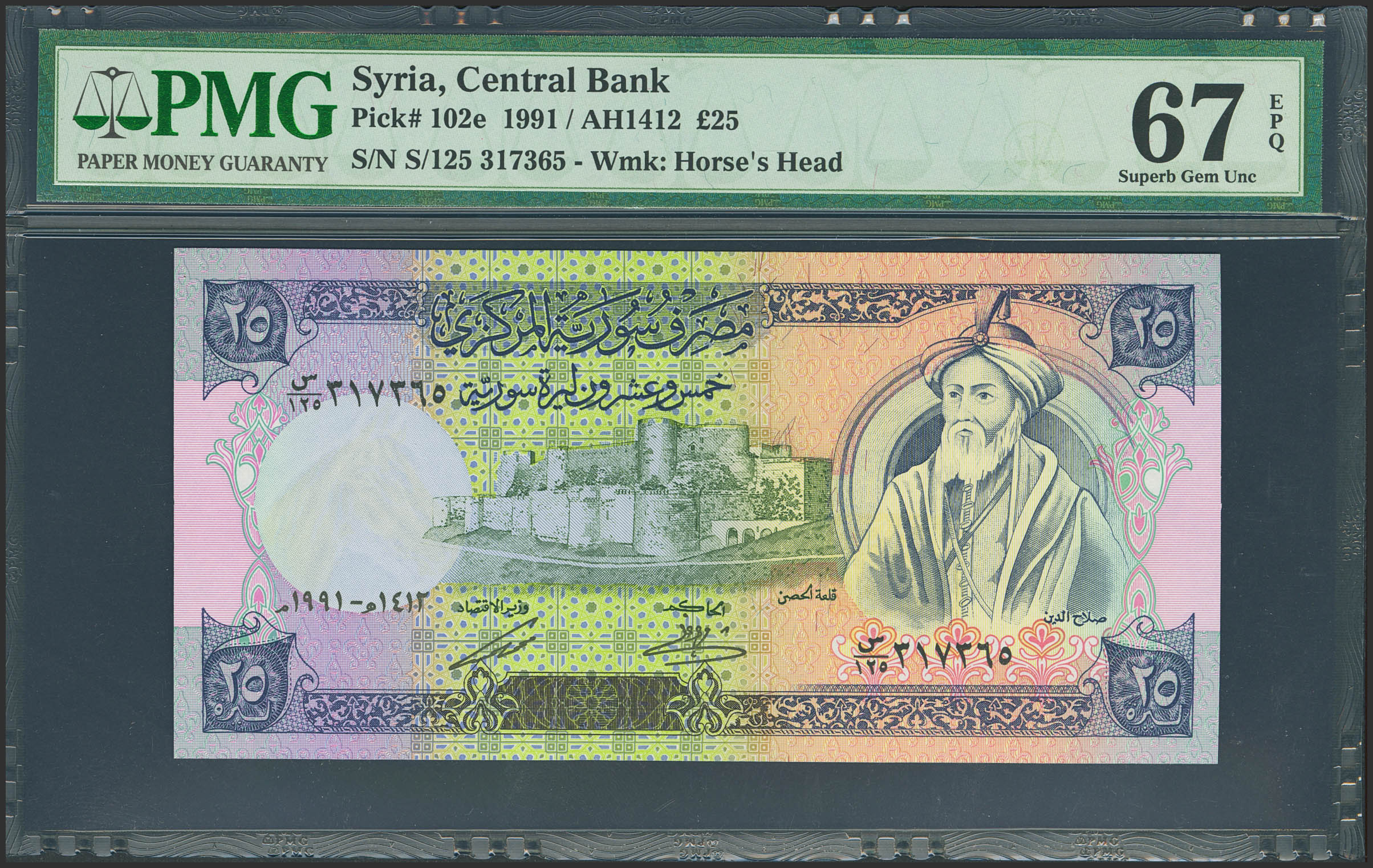 SYRIA. 25 Pounds. 1991. (Pick: 102e). PMG67EPQ.