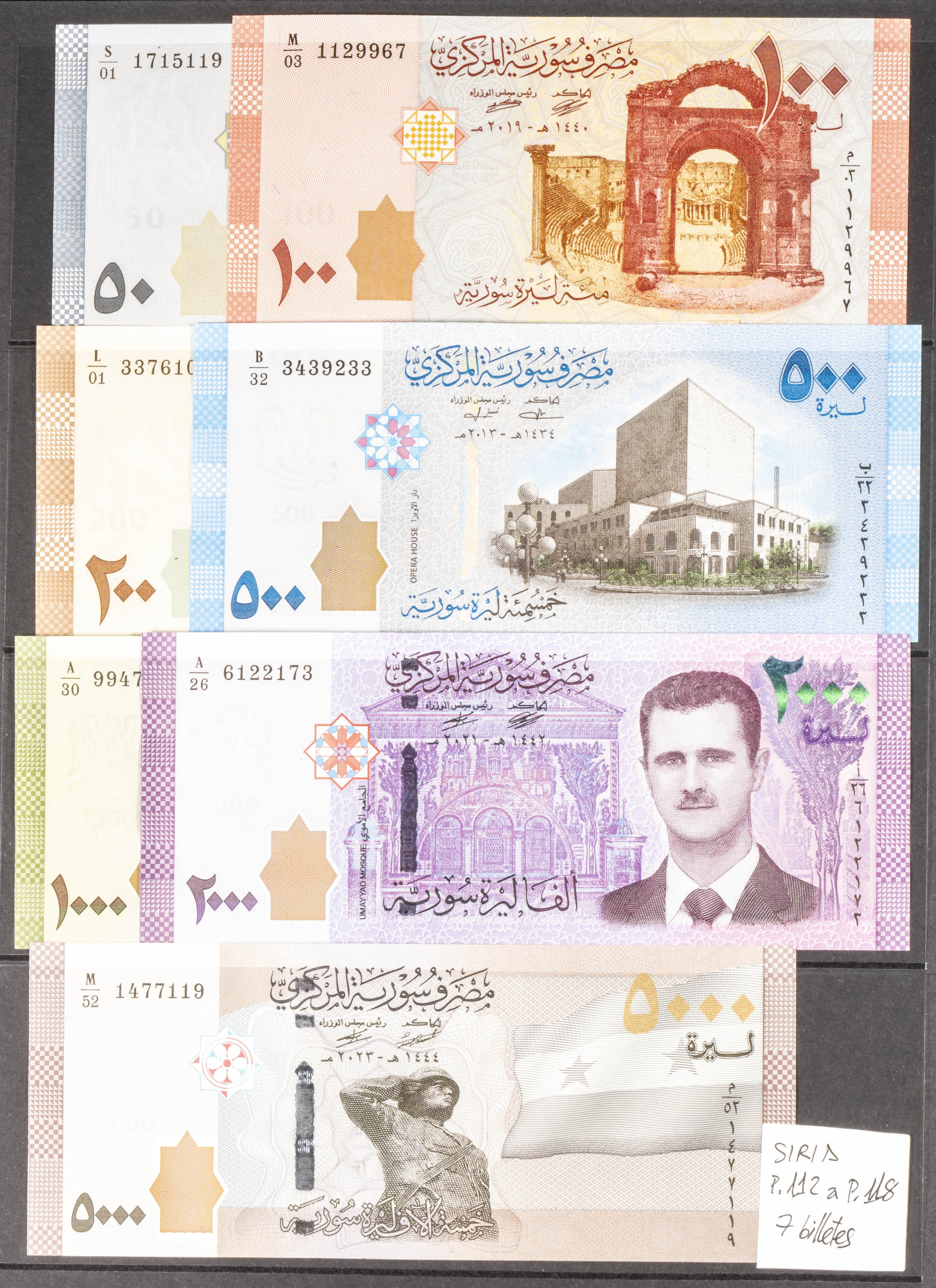 Set of 7 banknotes of Syria of same issues and different qualities. TO EXAMINE.