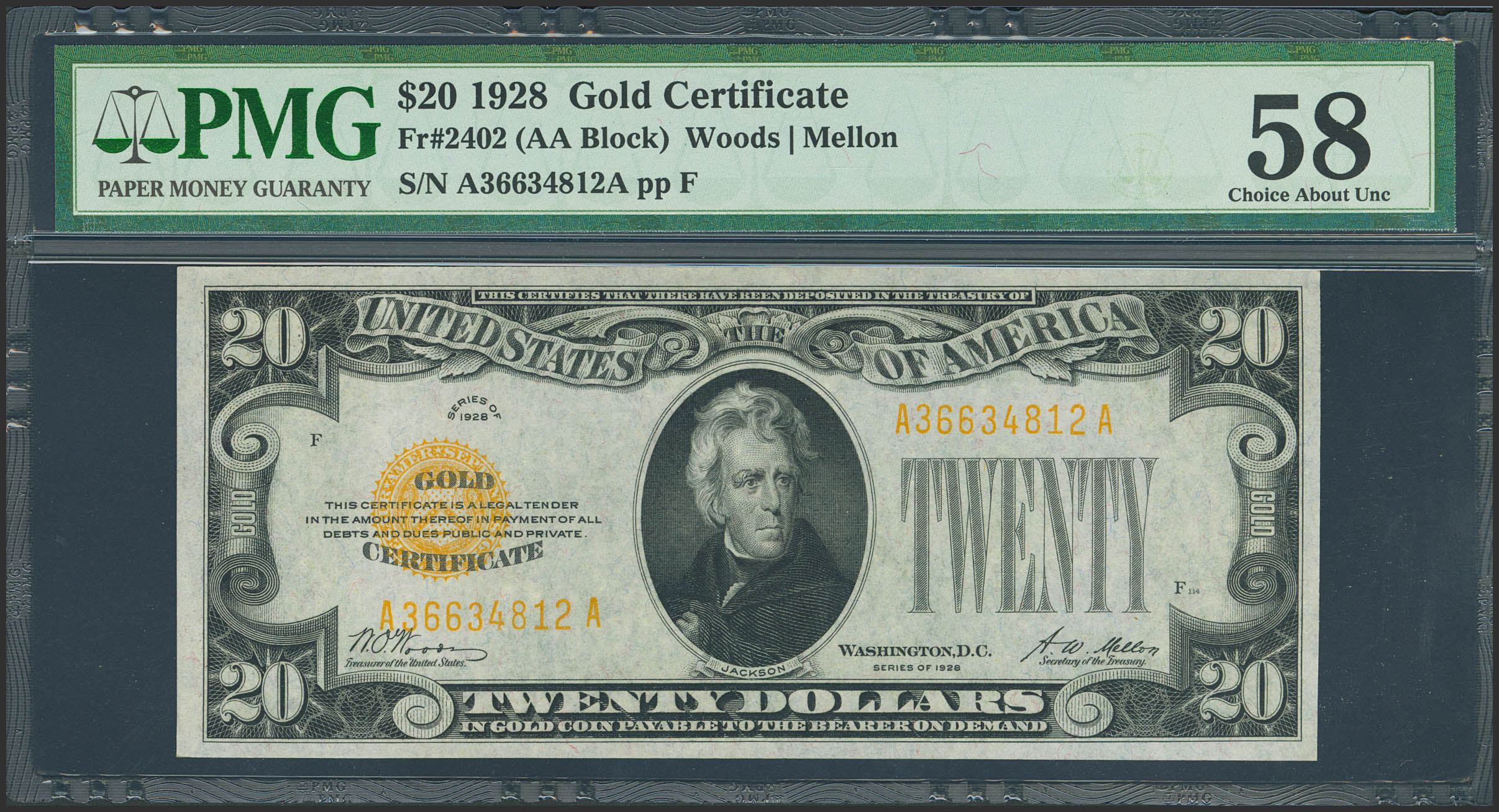UNITED STATES. 20 Dollars. 1926. Gold Certificate. (FR: 2402). PMG58.