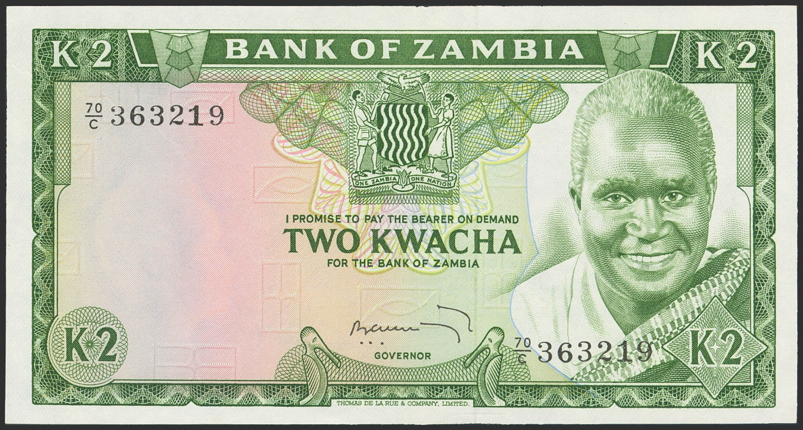 ZAMBIA. 2 Kwacha. (1976ca). (Pick: 20). Less than Uncirculated.