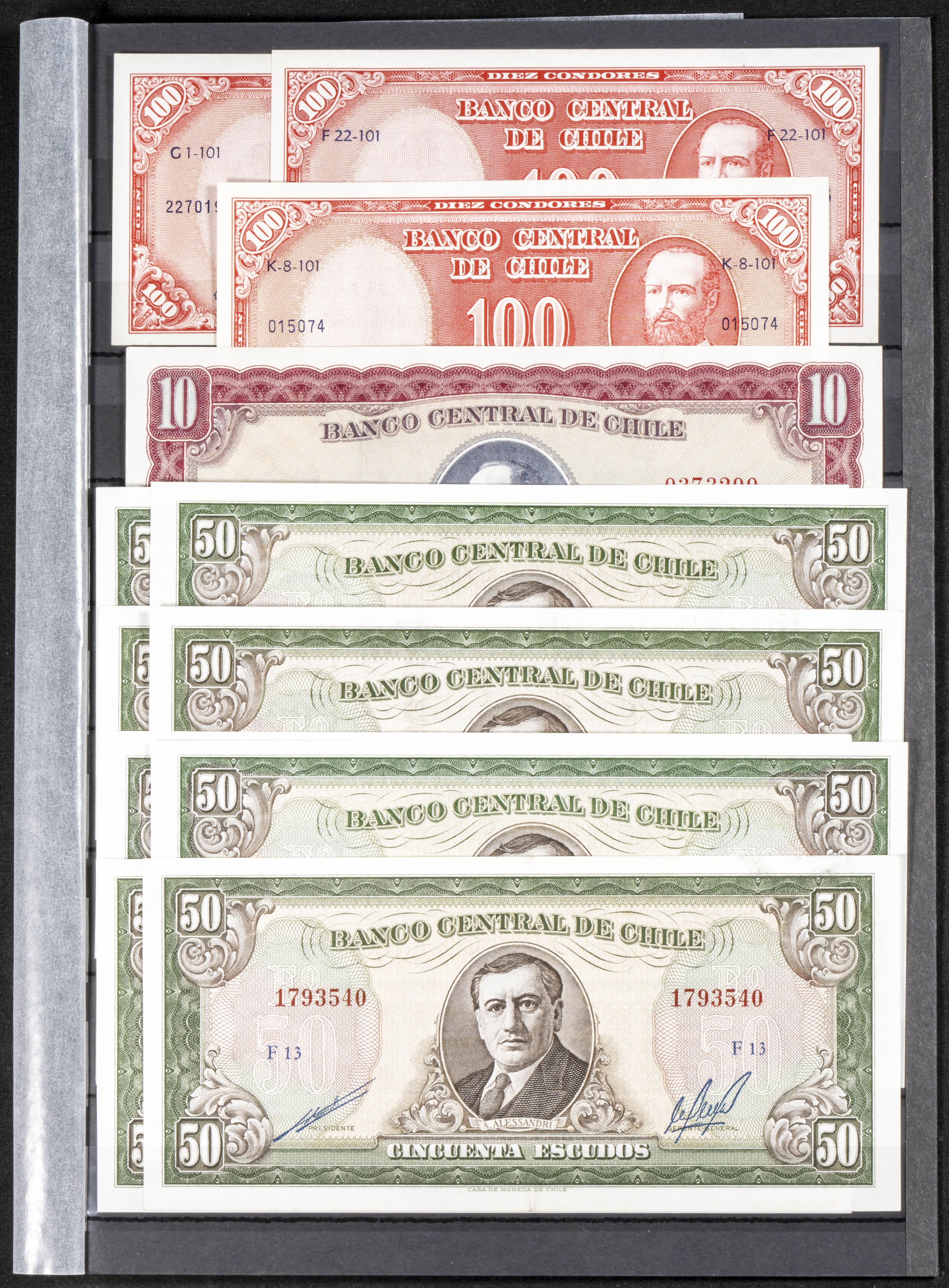 Set of more than 120 banknotes of the Bank of Chile of different issues and most of them uncirculated. TO EXAMINE.