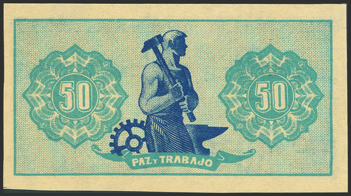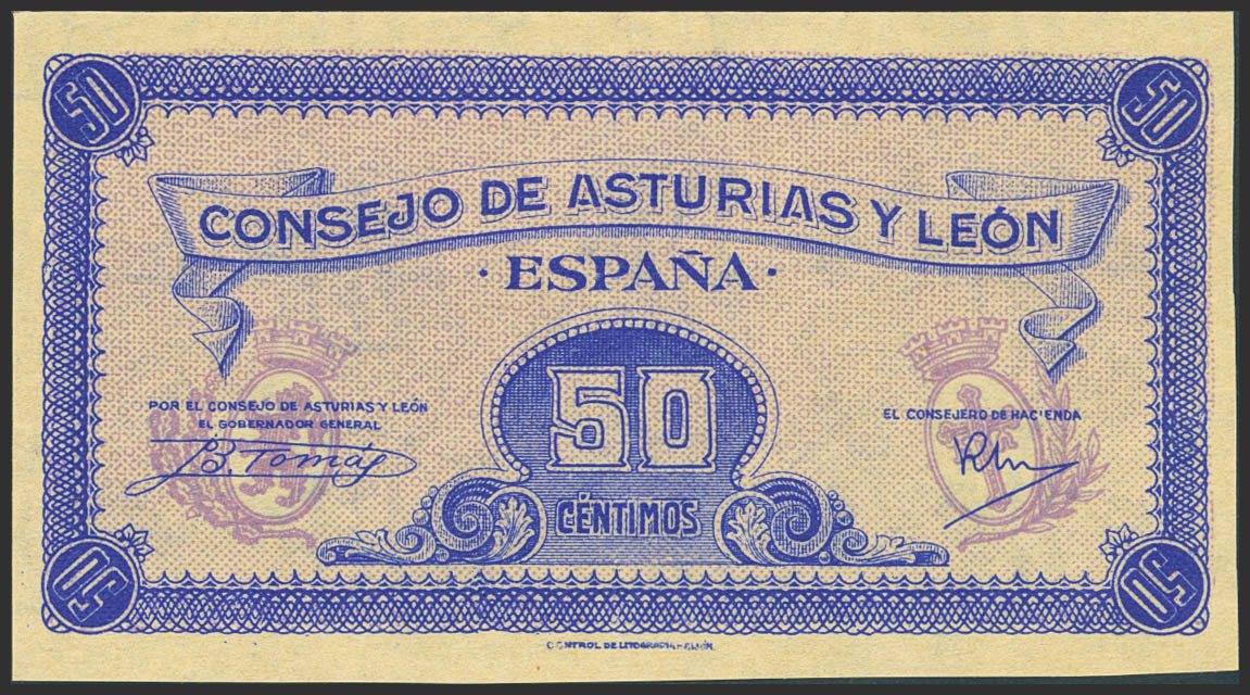 50 Cents. 1937. Asturias and León. Unnumbered. (Edifil 2023: 396n). Very rare in this quality, original finish. Uncirculated.