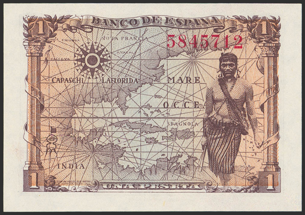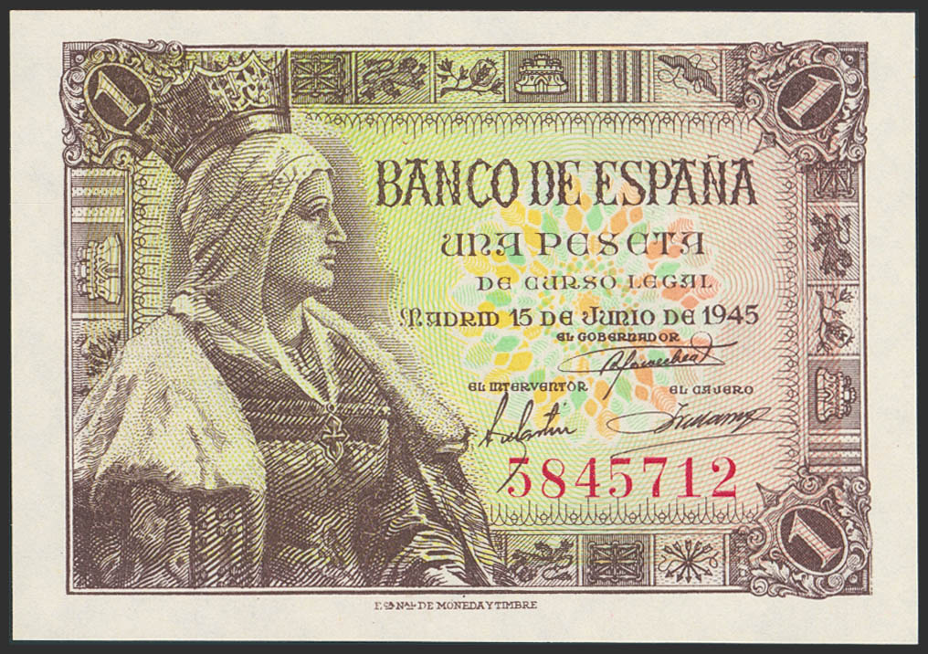 1 Peseta. June 15, 1945. No series. (Edifil 2023: 448). Original marking. Uncirculated.