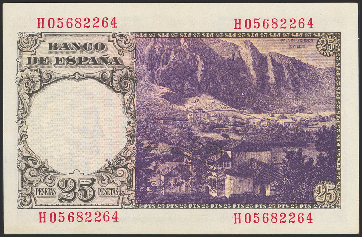 25 Pesetas. February 19, 1946. Series H. (Edifil 2023: 450a). Original marking. Uncirculated-.