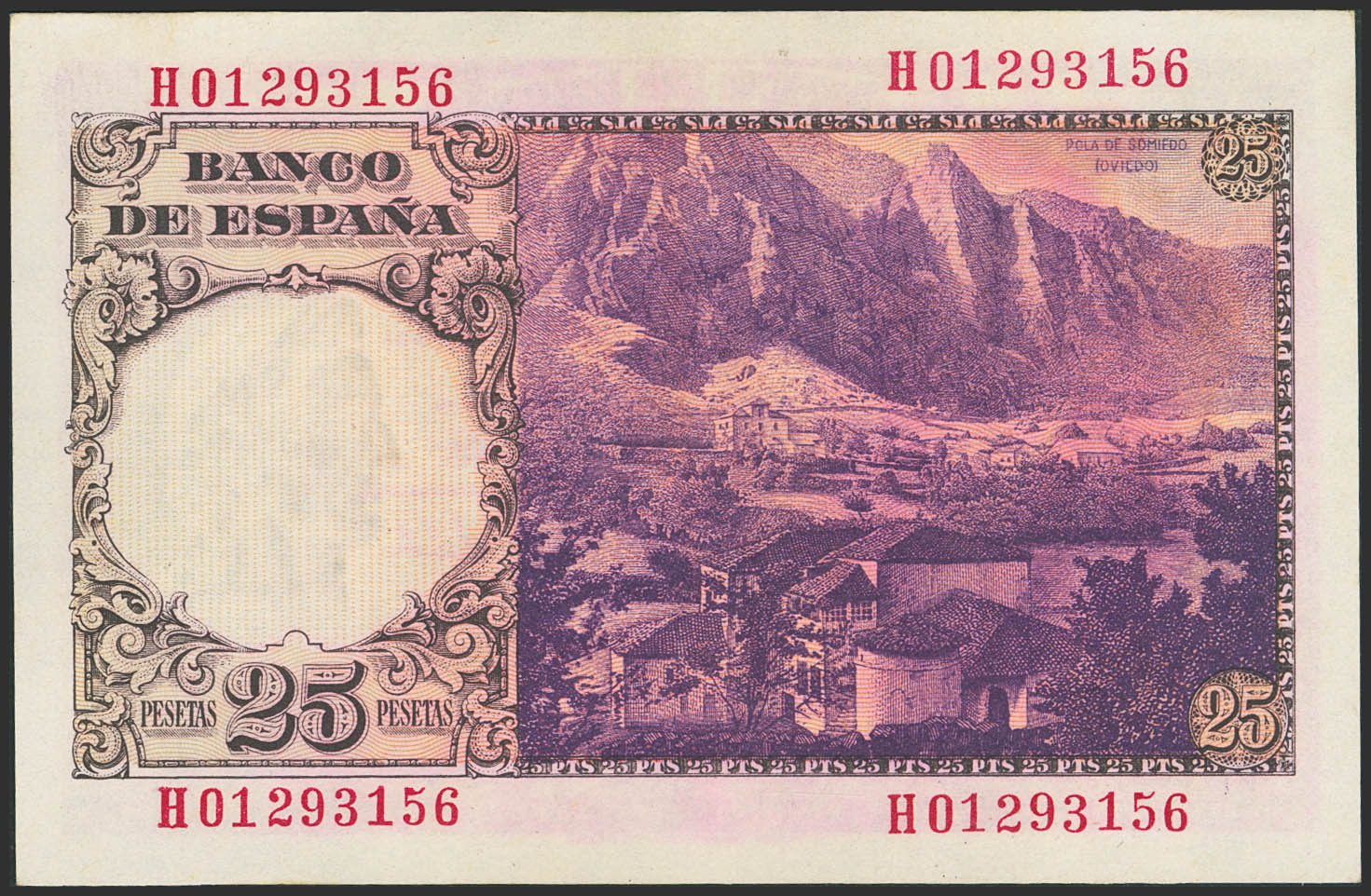 25 Pesetas. February 19, 1946. Series H. (Edifil 2023: 450a). Retains part of its original finish. Good Extremely Fine+.