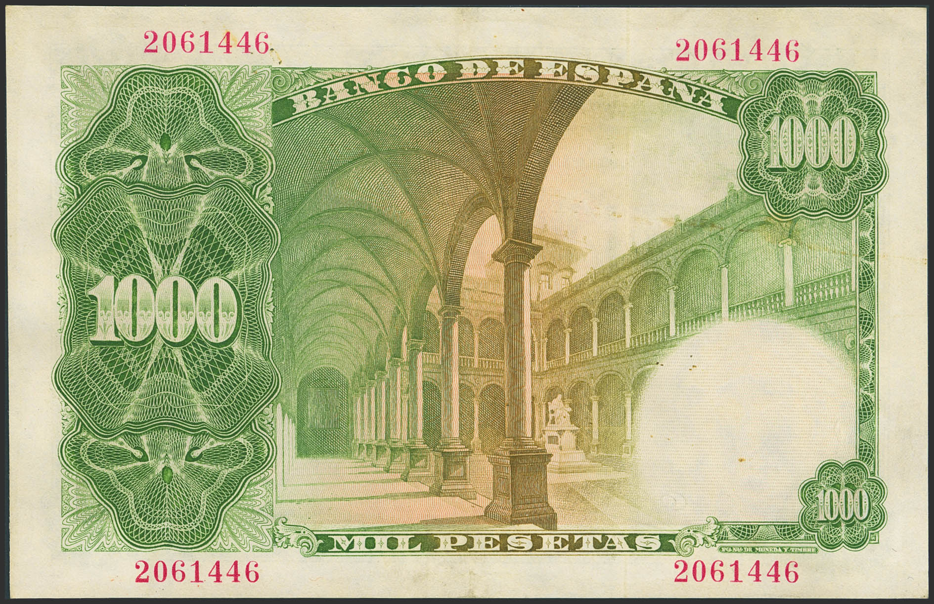 1000 Pesetas. February 19, 1946. No series. (Edifil 2023: 453). Very impressive banknote. Extremely Fine.