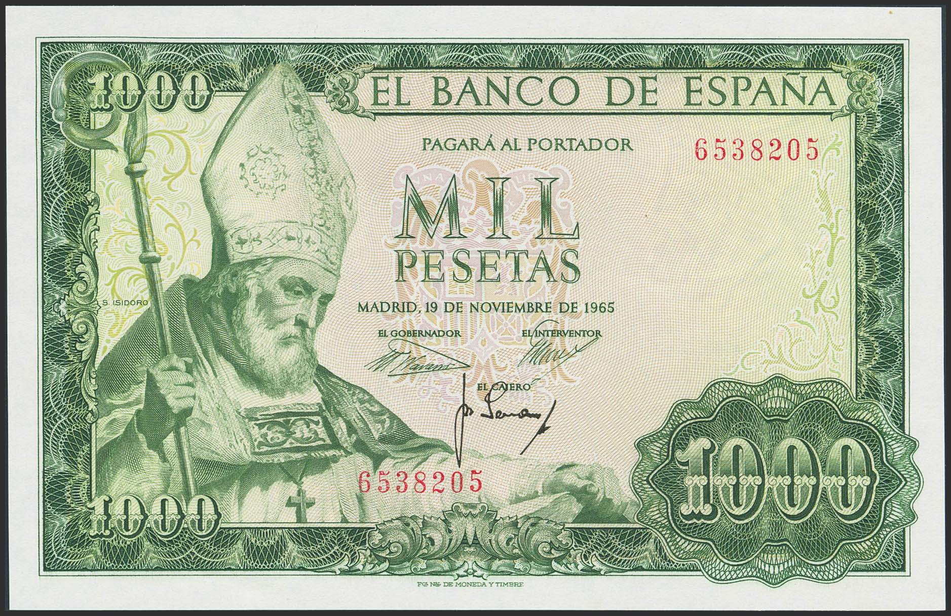 1000 Pesetas. November 19, 1965. Without series. (Edifil 2023: 471). It retains all its original appearance. Uncirculated-.