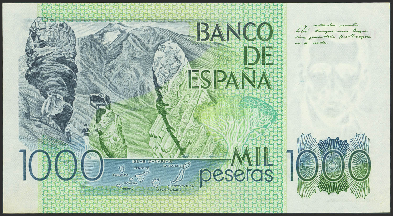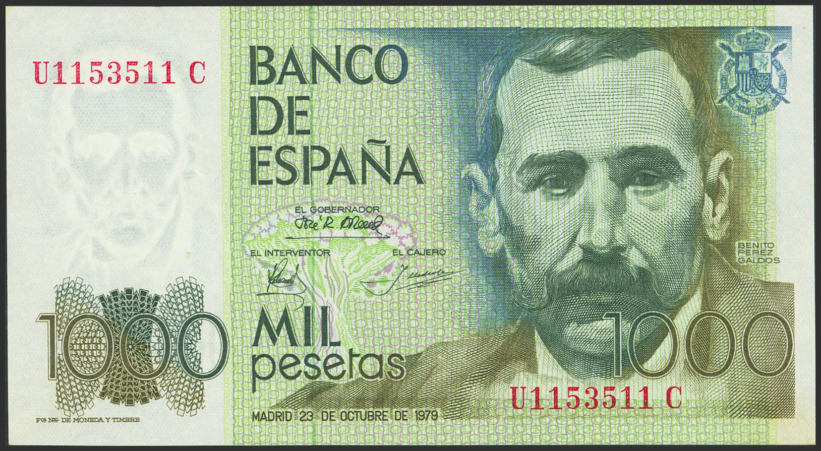 1000 Pesetas. October 23, 1979. UC series and palindrome numbering. (Edifil 2021: 477a). Uncirculated.