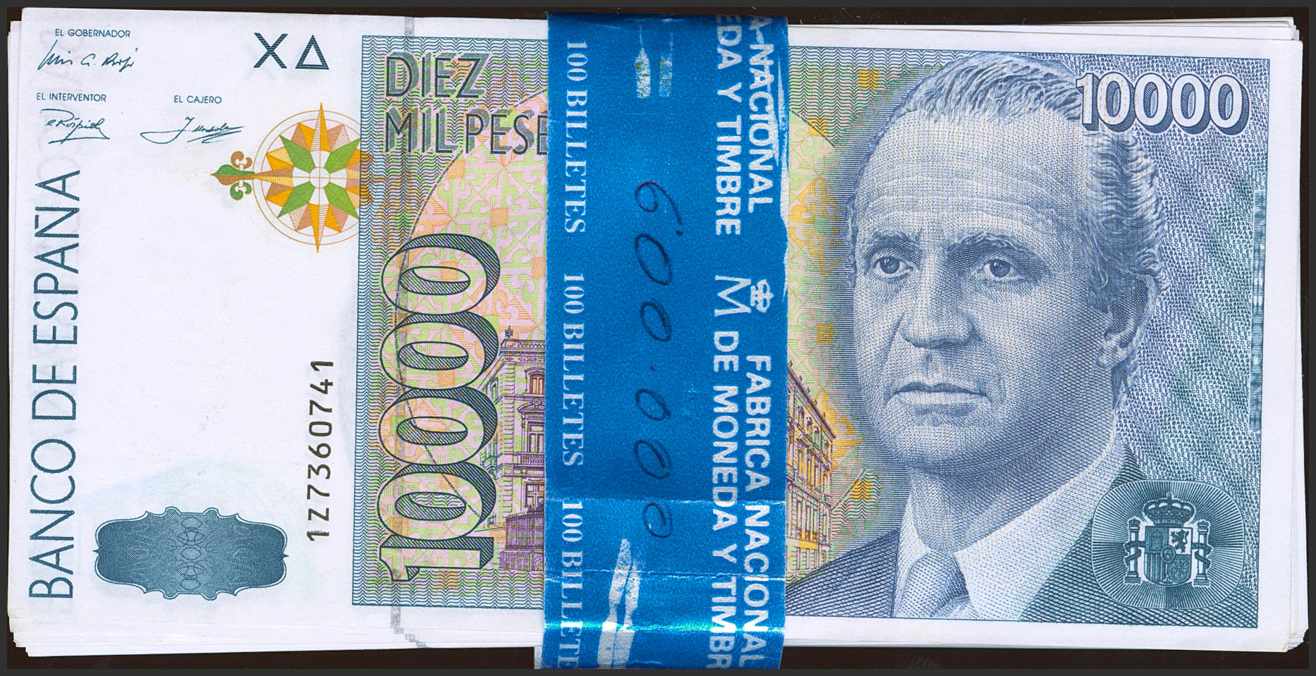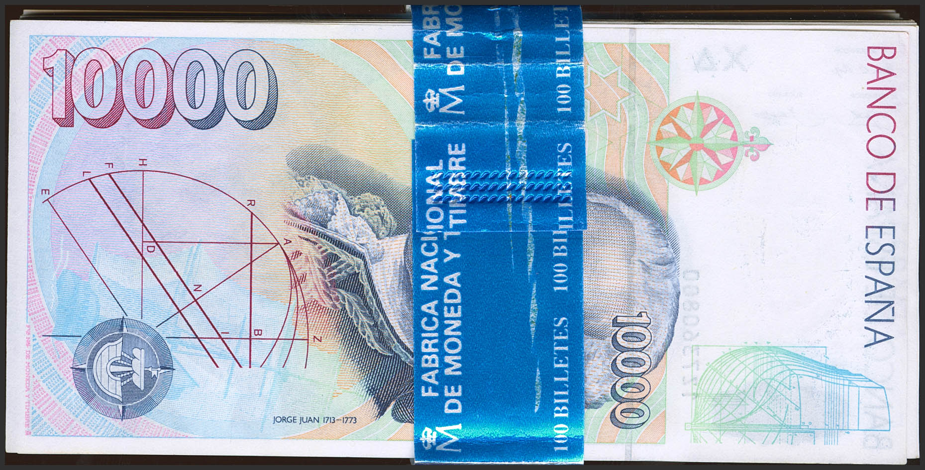 Set of 60 consecutive 10,000 Pesetas banknotes issued on October 12, 1992, with the 1Z series and with its original seal (handwritten). (Edifil 2023: 485a). Uncirculated/Uncirculated-.