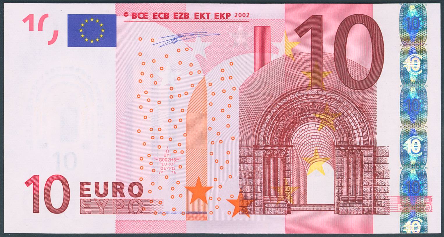 English 10 Euros. January 1, 2002. Duisenberg signature. Series V (Spain). (Edifil 2023: 487). Uncirculated.