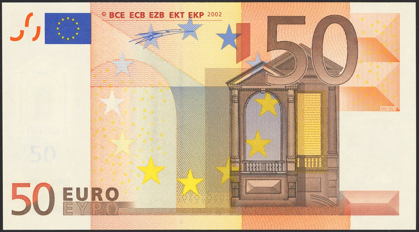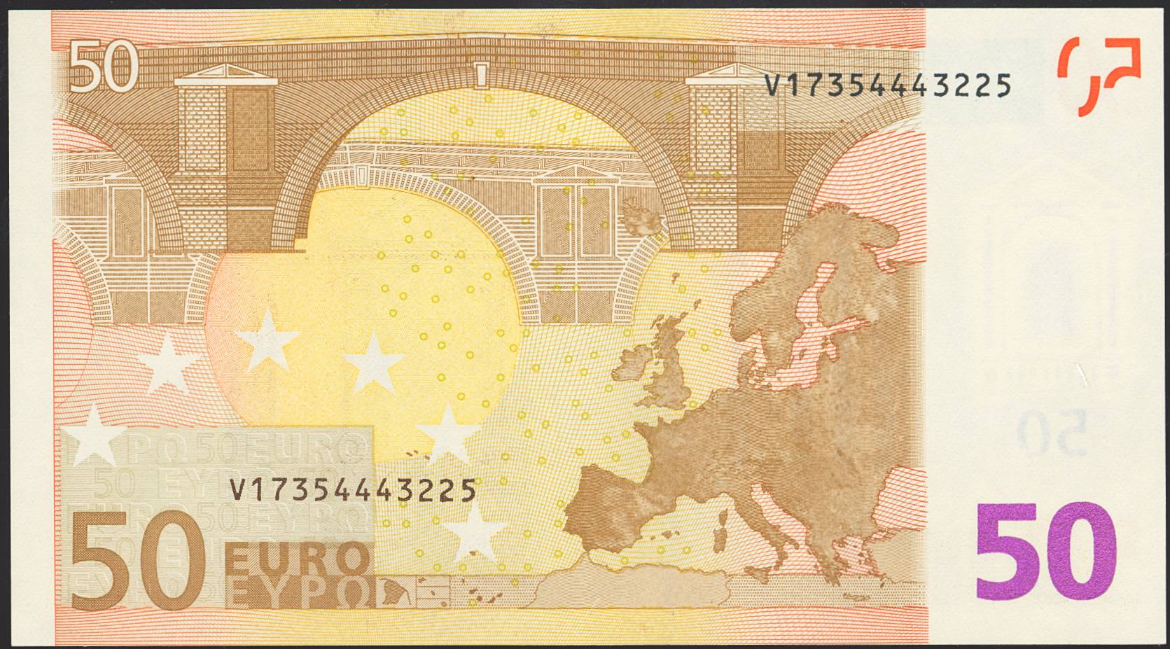 50 Euros. January 1, 2002. Duisenberg signature. Series V (Spain). (Edifil 2021: 489, Pick: 4v). Rare, lacking the hologram. Uncirculated.