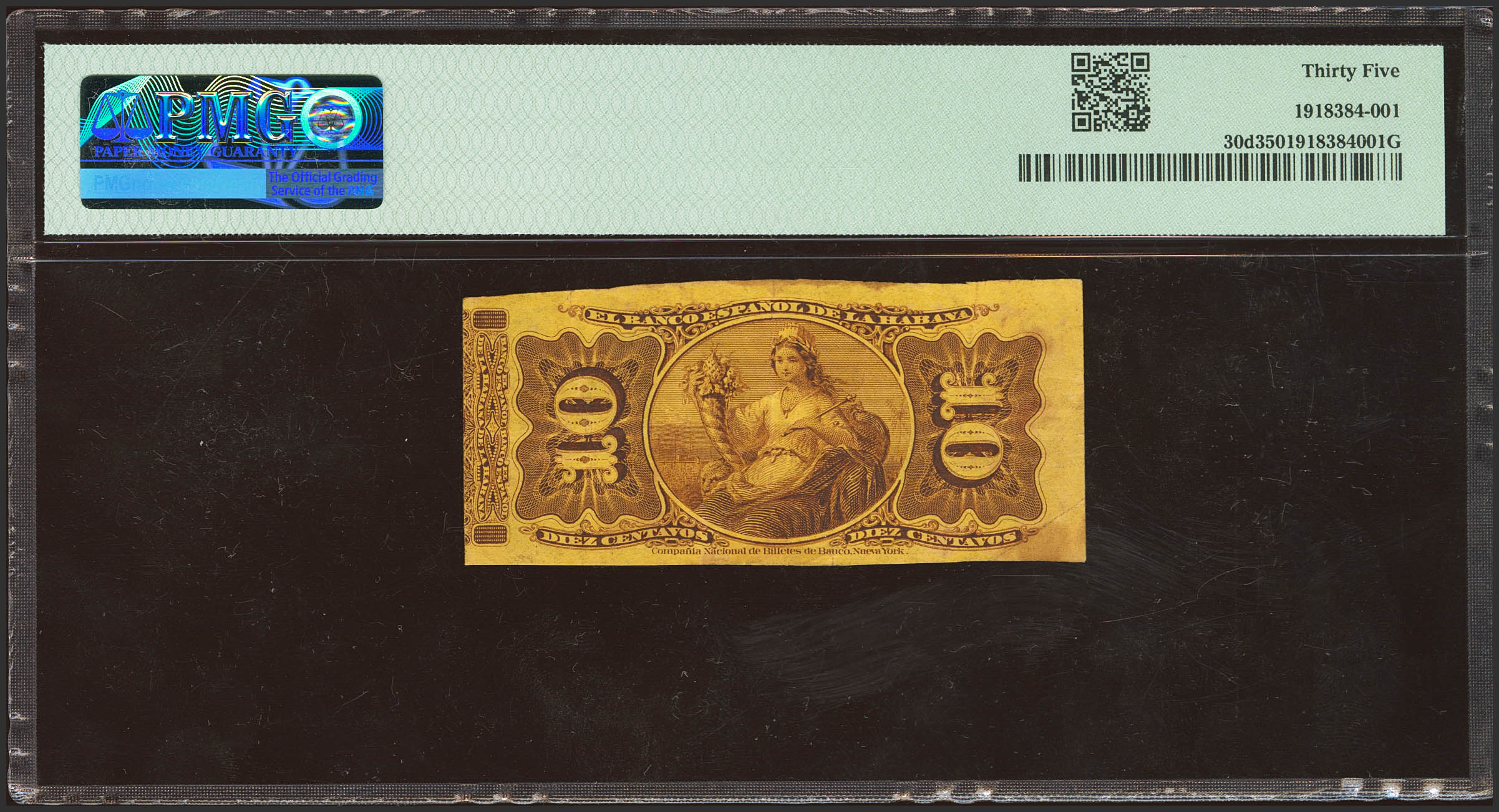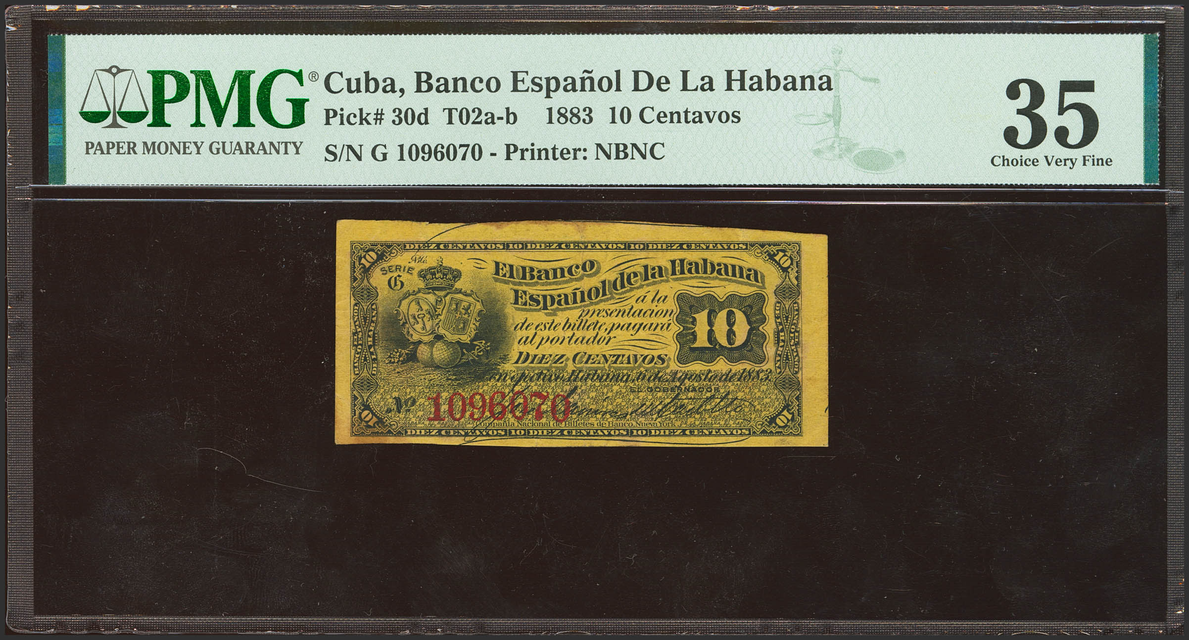 SPANISH BANK OF HAVANA. 10 Cents. August 6, 1883. Series G. (Edifil 2023: 46). Good Very Fine. Encapsulated PMG35.
