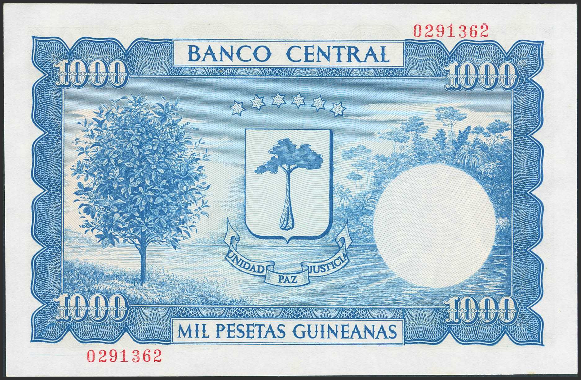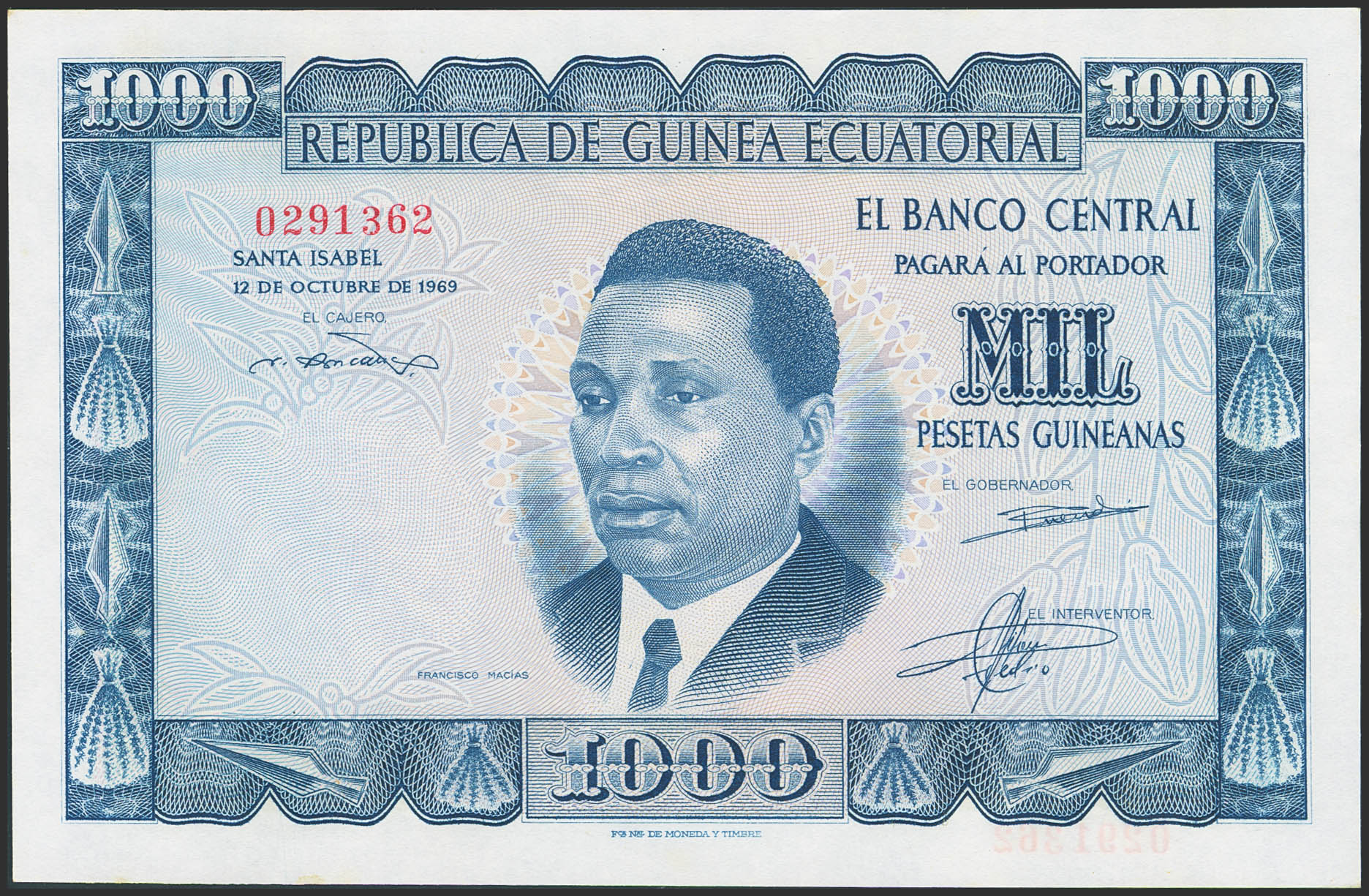 EQUATORIAL GUINEA. 1000 Pesetas. October 12, 1969. (Pick: 3). Original marking. Uncirculated-.