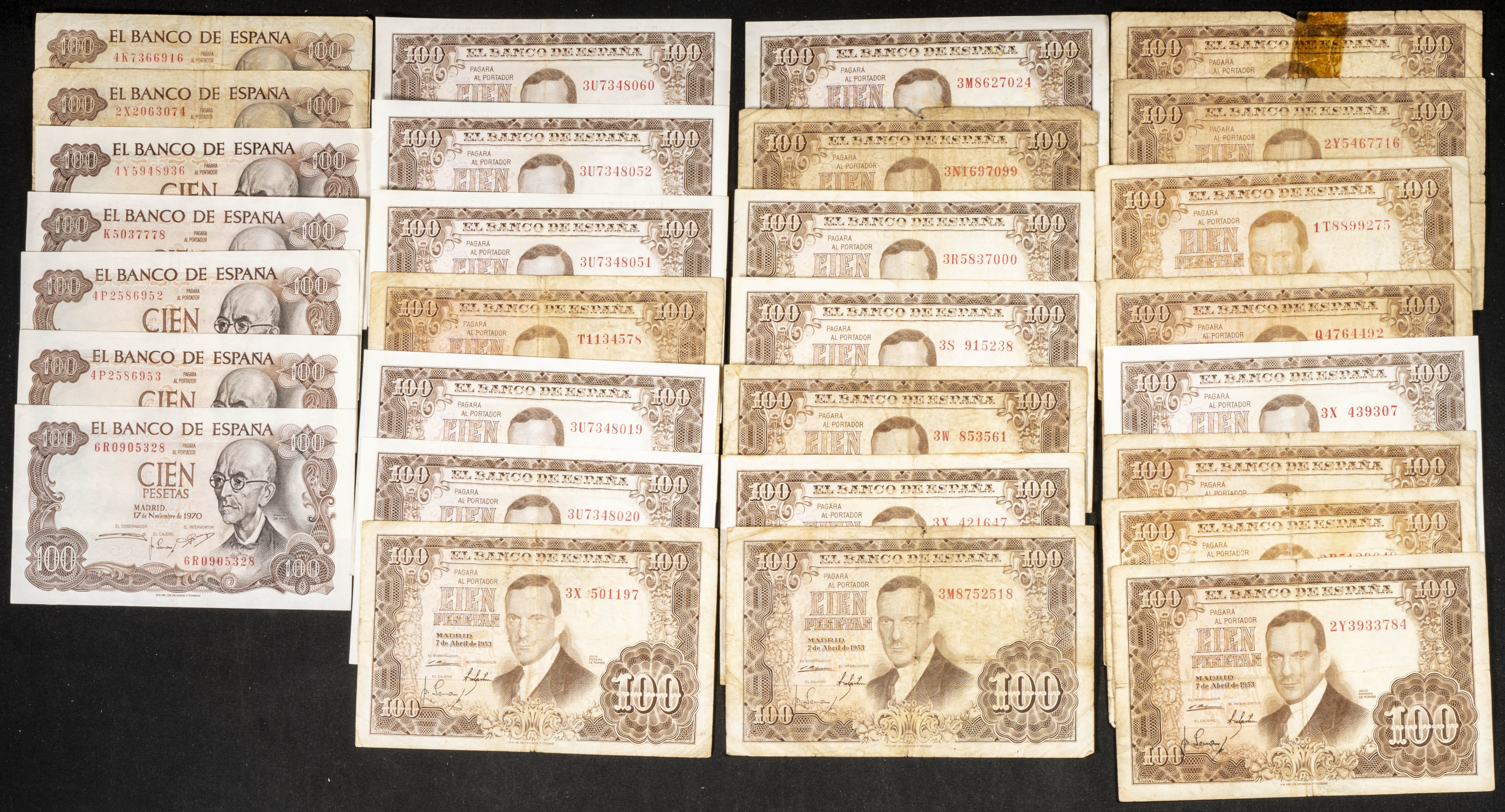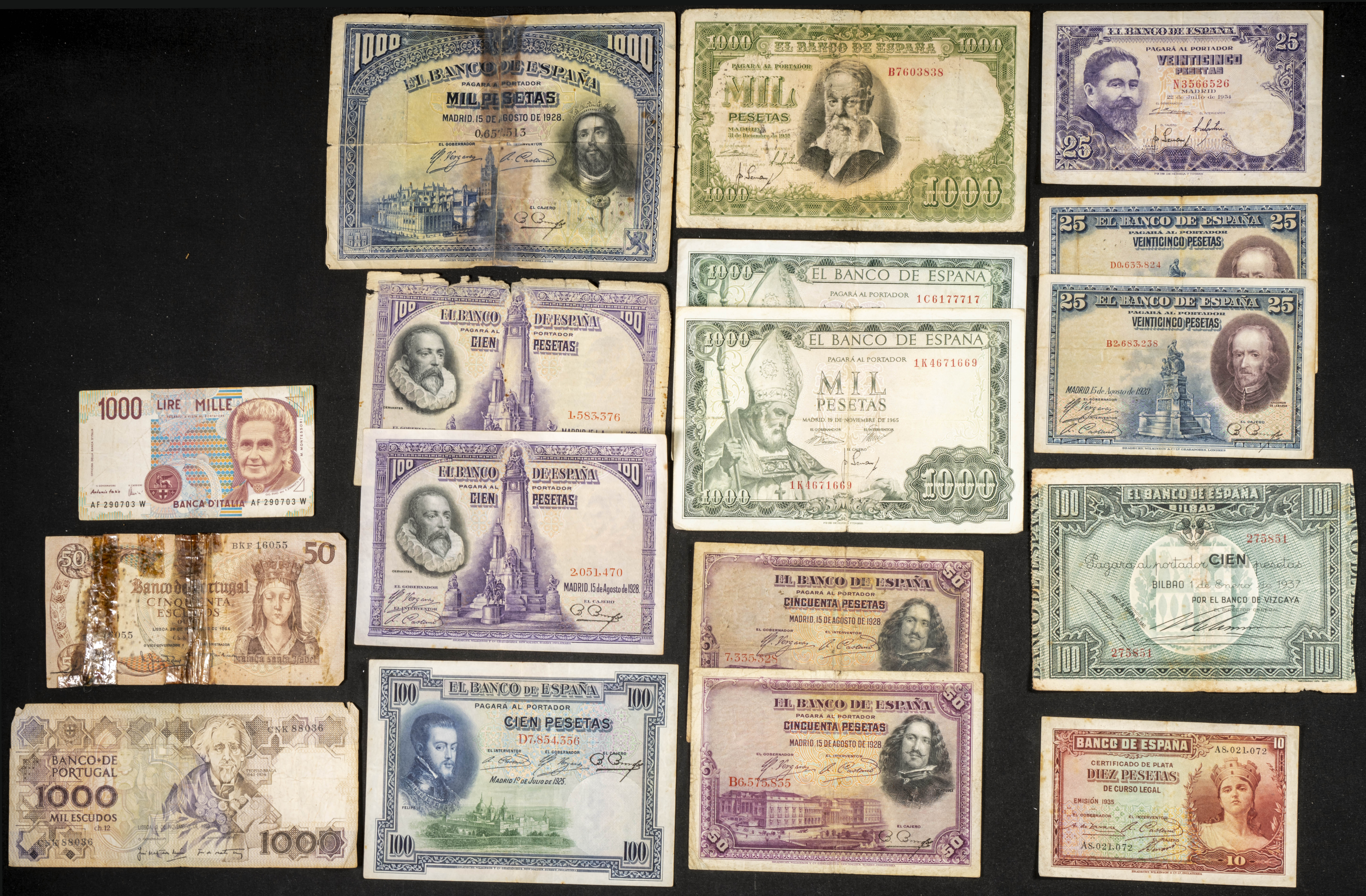English Set of more than 40 banknotes from the Bank of Spain, of different issues and in various qualities. TO BE EXAMINED.