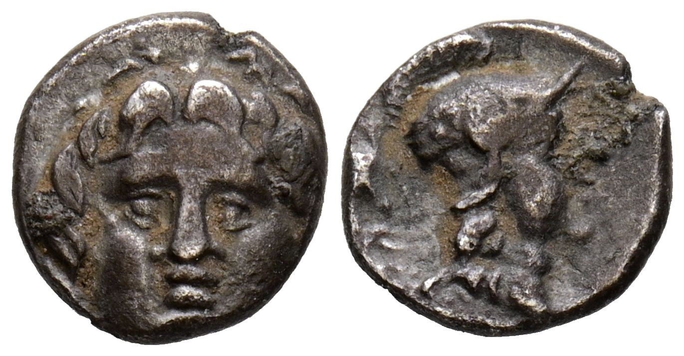 PISIDIA, Selge. Obolo. (Ar. 0.84g/10mm). 350-300 Fine (SNG von Aulock 5278; SNG BnF 1932). Obv: Gorgoneion facing front. Rev: Helmeted head of Athena right, astragalus behind. VF.