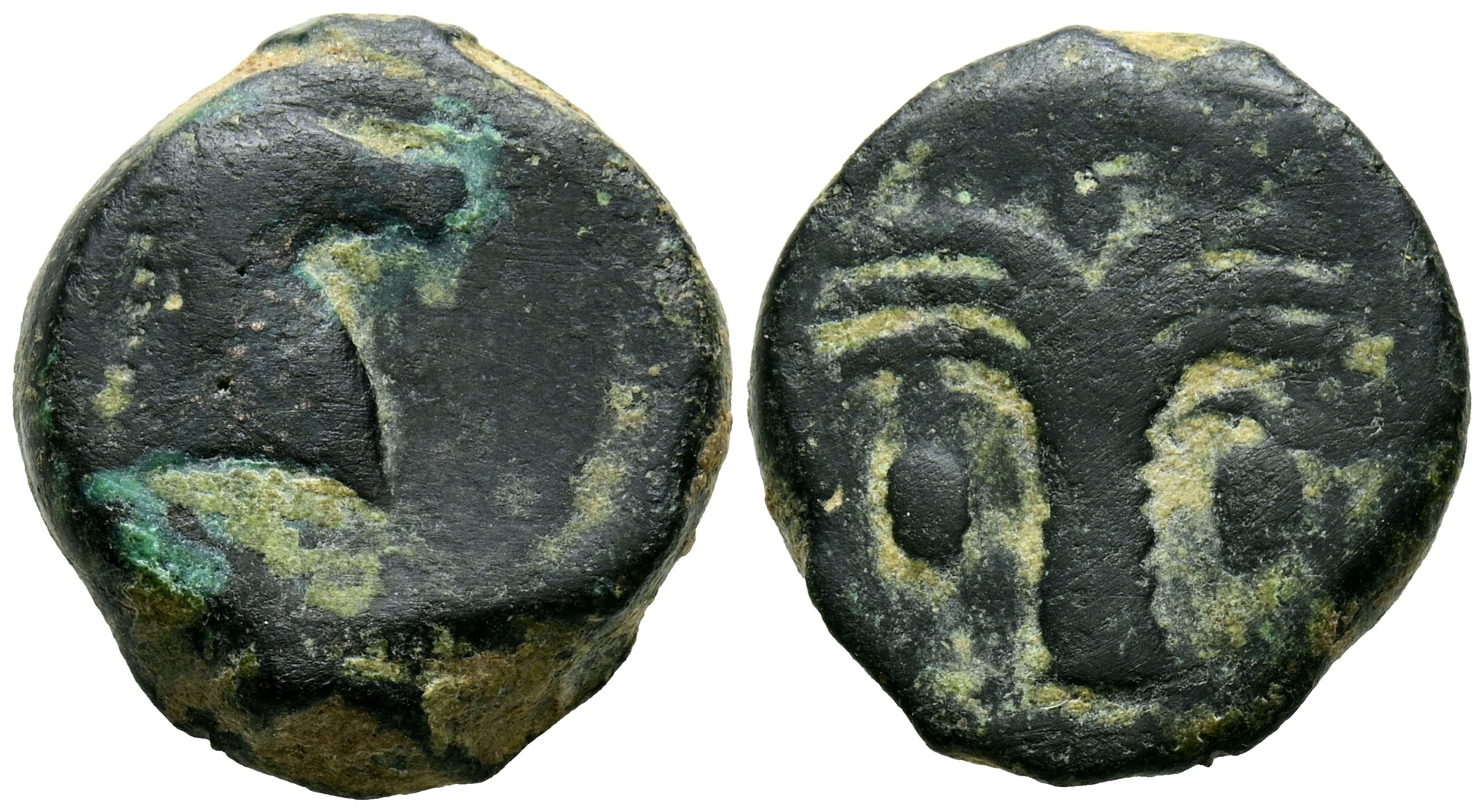 CARTAGONOVA (Cartagena, Murcia). 1/2 Calco. (Ae. 8.65g/20mm). 220-215 Fine (FAB-519). Obv: Horse's head right. Rev: Palm tree. Good Fine.