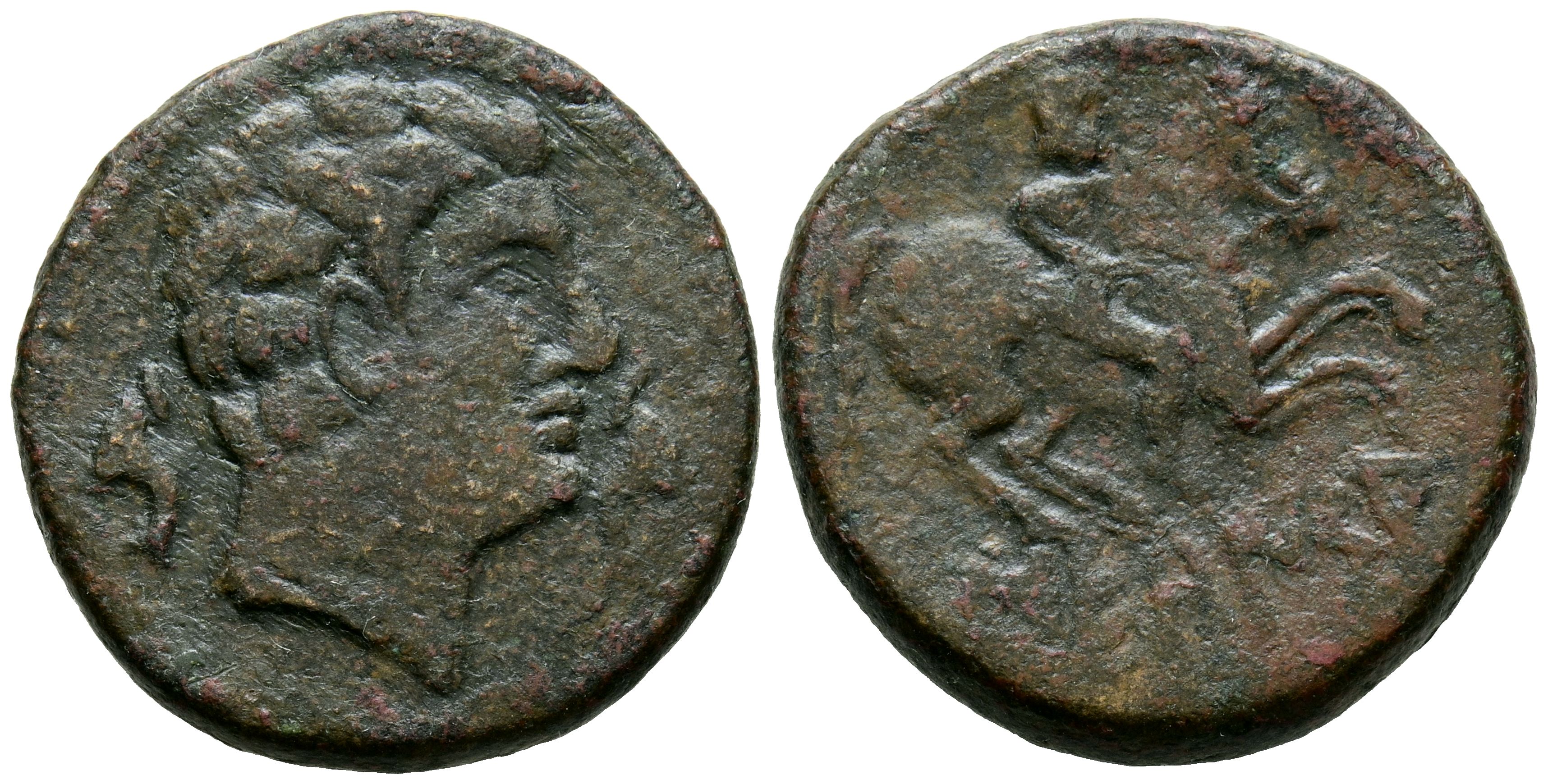 SECAISA (Segeda, Zaragoza). As. (Ae. 10.32g/24mm). 120-20 Fine (FAB-2133). Obverse: Male head facing right, between two dolphins. Reverse: Horseman with lance facing right with feet visible, below Iberian legend: SECaISA. Very Fine-/Good Fine.