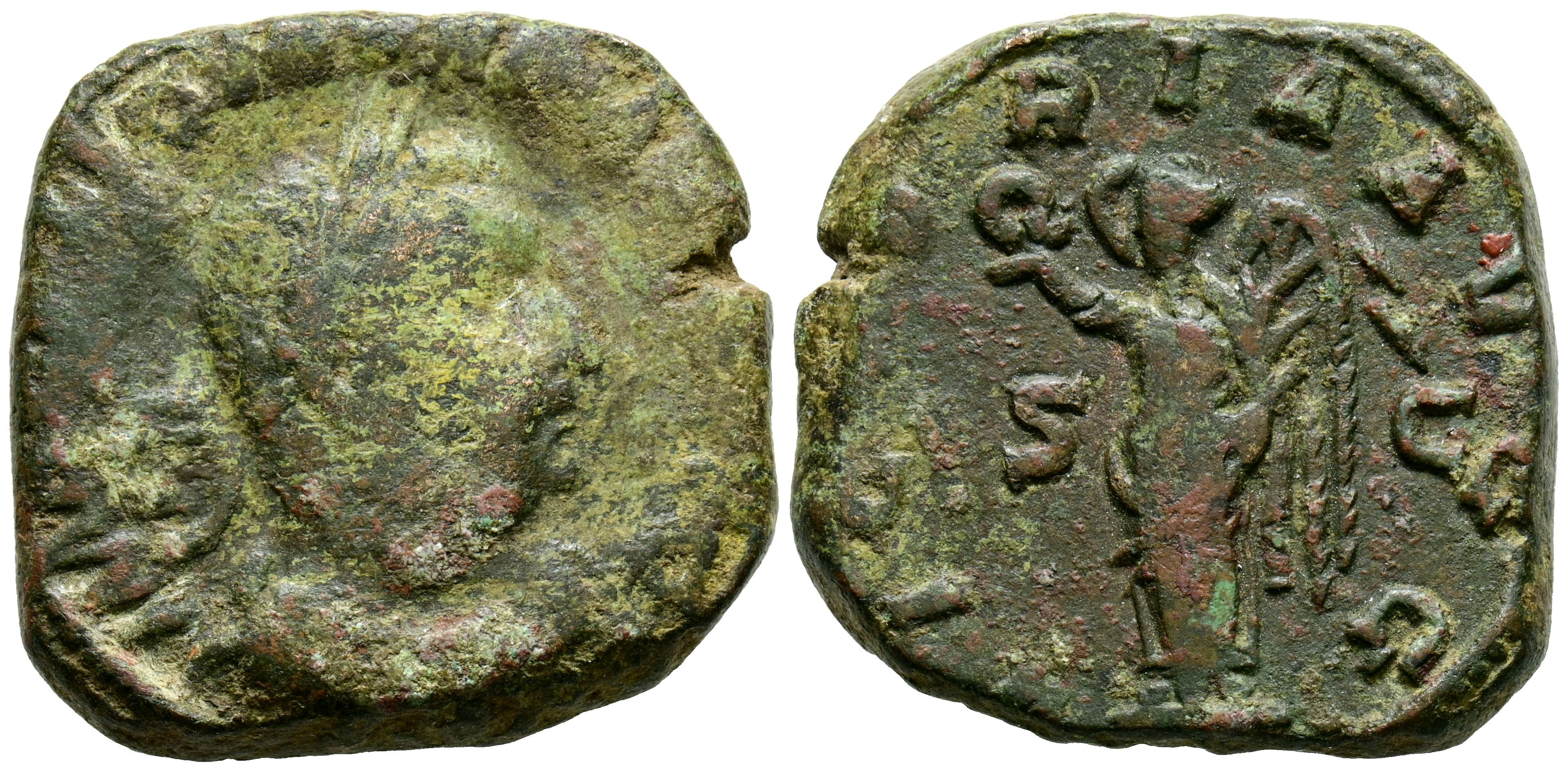 GALIENUS. Sestertius. (Ae. 20.20g/30mm). 253-254 AD Rome. (RIC 243). Obv: Laureate and cuirassed bust of Gallienus facing right, around legend: IMP CP LIC GALLIENVS. Rev: Victory standing left wearing a laurel wreath and palm, between Uncirculated, around legend: VICTORIA AVGG. Good Fine/Very Fine.