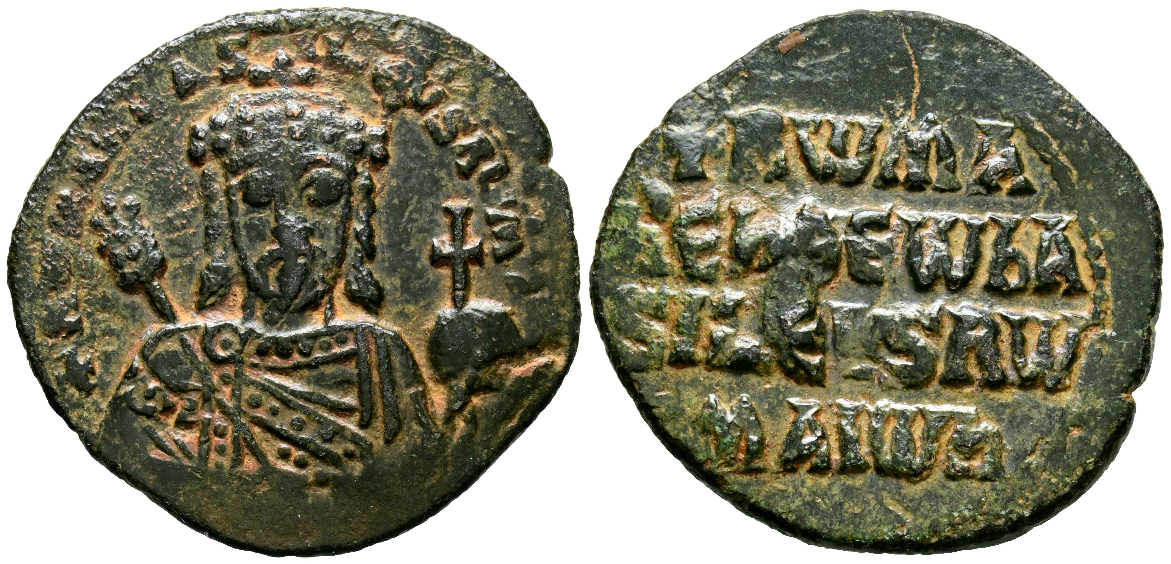 CONSTANTINE VII Porphyrogenitus and ROMAN I. Follis. (Ae. 6.85g/27mm). 913-959 AD Constantinople. (Seaby 1760). Obv: Crowned bust facing front, holding cruciferous globe and labarum. Rev: Four-line legend. VF.